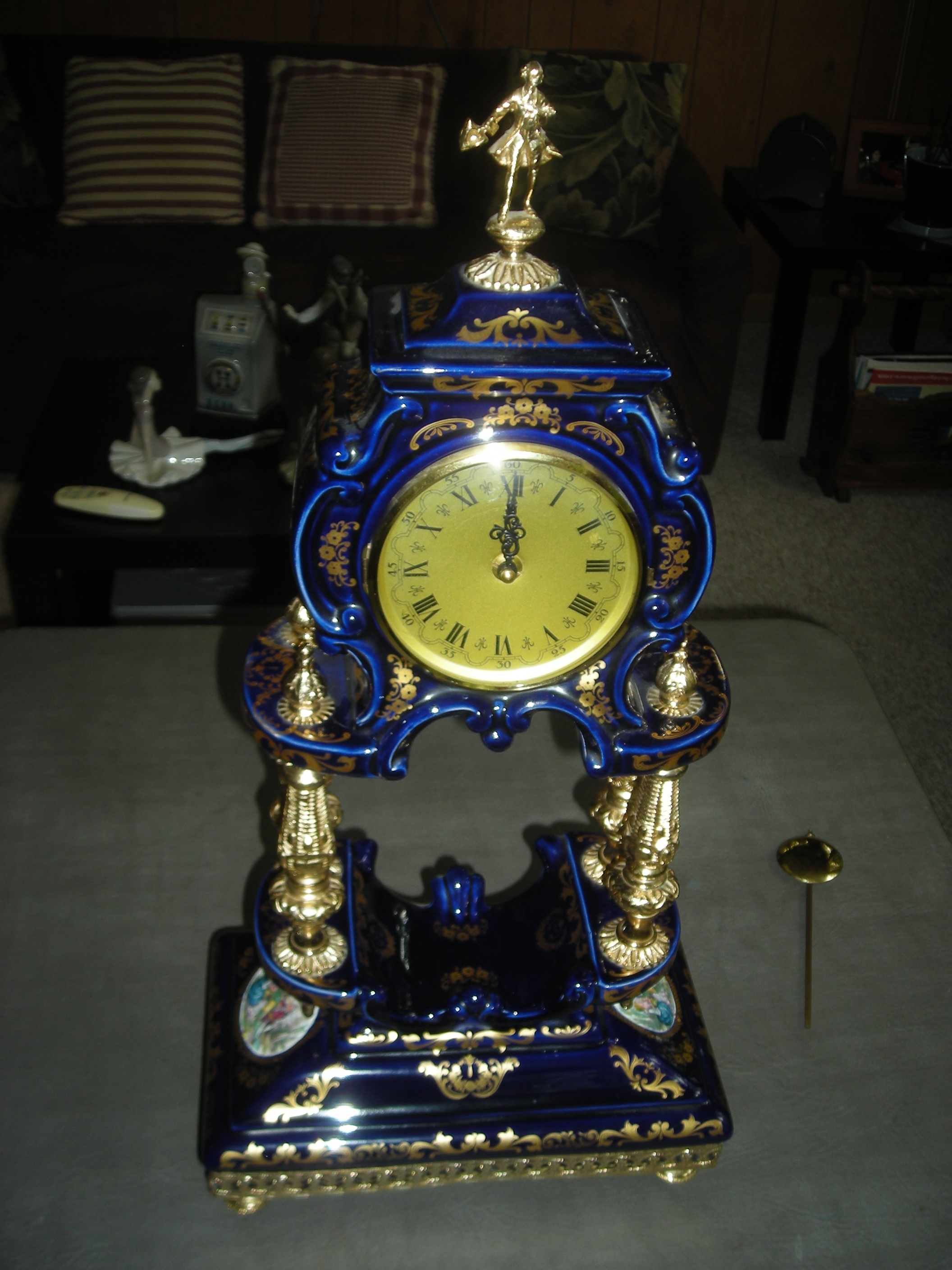 Re: Italian Pendulum Mantel Clock Royal Blue Gold Trim