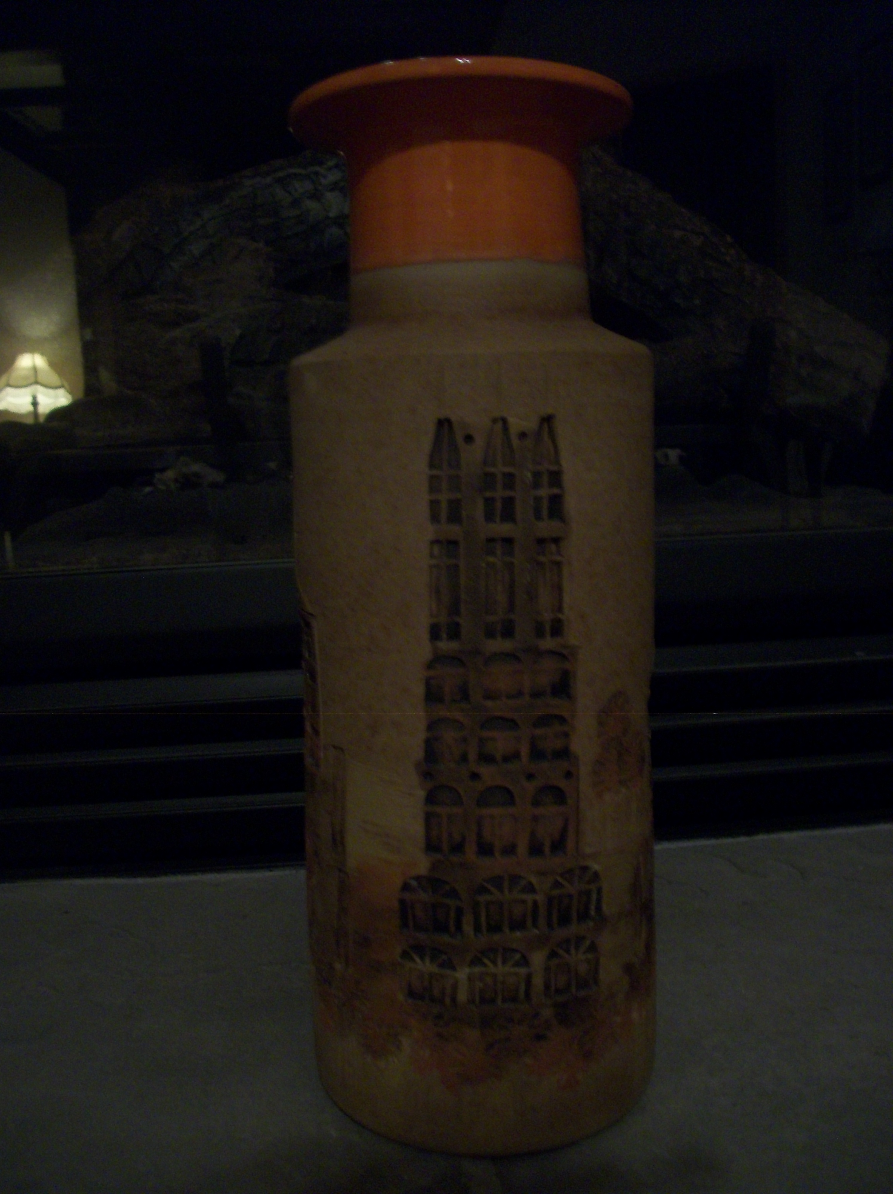 I bought this Italian pottery (assuming it's Italian) at a garage sale. I have no further information. I am wondering if this is an antique and what the mark represents on the bottom of this vase. The vase itself has an engrained pictures of buildings right into the vase itself.