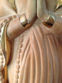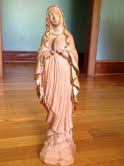 This was given to me by my grandmother. It appears to be made of clay, or something similar. I have no knowledge of this type of thing. It is approximately 12 inches tall, and has what appears to be a gold paint edging on it. I see that there is a numbering on the bottom, and a sticker from a manufacturer, but I haven't been able to find anything about it online. I am not sure it is worth anything, other than sentimental value, but I am curious. Any ideas?