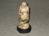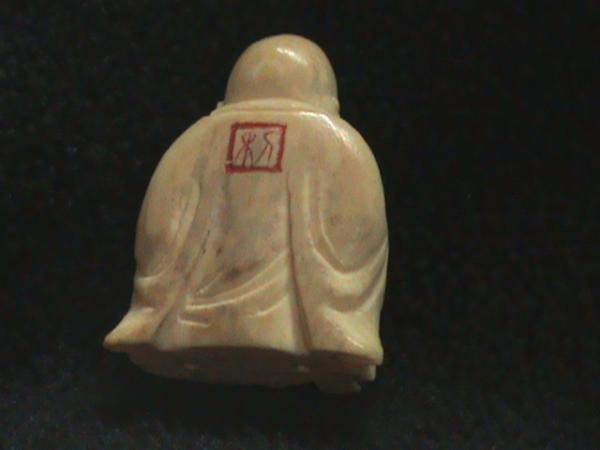 This is a very nicely carved budda. Referred to as Happy Budda, he sits with one hand in his knee and holding something in the other hand, possibly a gemstone of some kind. It measures 1 1/2"x1"x1/2" and is in excellent condition. He doesn't wear the jewelry I've seen on other statues from the 1800's so I'm guessing since my father bought it when he was in the war, they may have been made later than the 1800's. I'm not sure if he got it in China or Japan. He was also stationed in Korea so maybe it came from there. Been doing alot of research for additional history and have several similar pieces all made in the late 1800's or early 1900's.