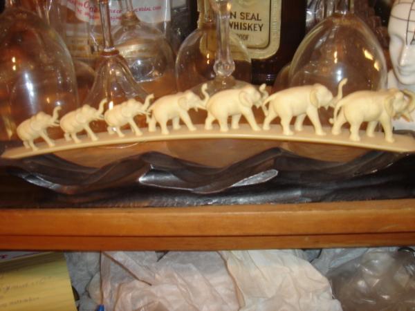 This piece is an old ivory carving of 7 elephants with a wood base. Most likely this was purchased while my great uncle served overseas. It must have been brought back to the US around the end of WW2. There are no broken pcs and seems to be in excellent condition.