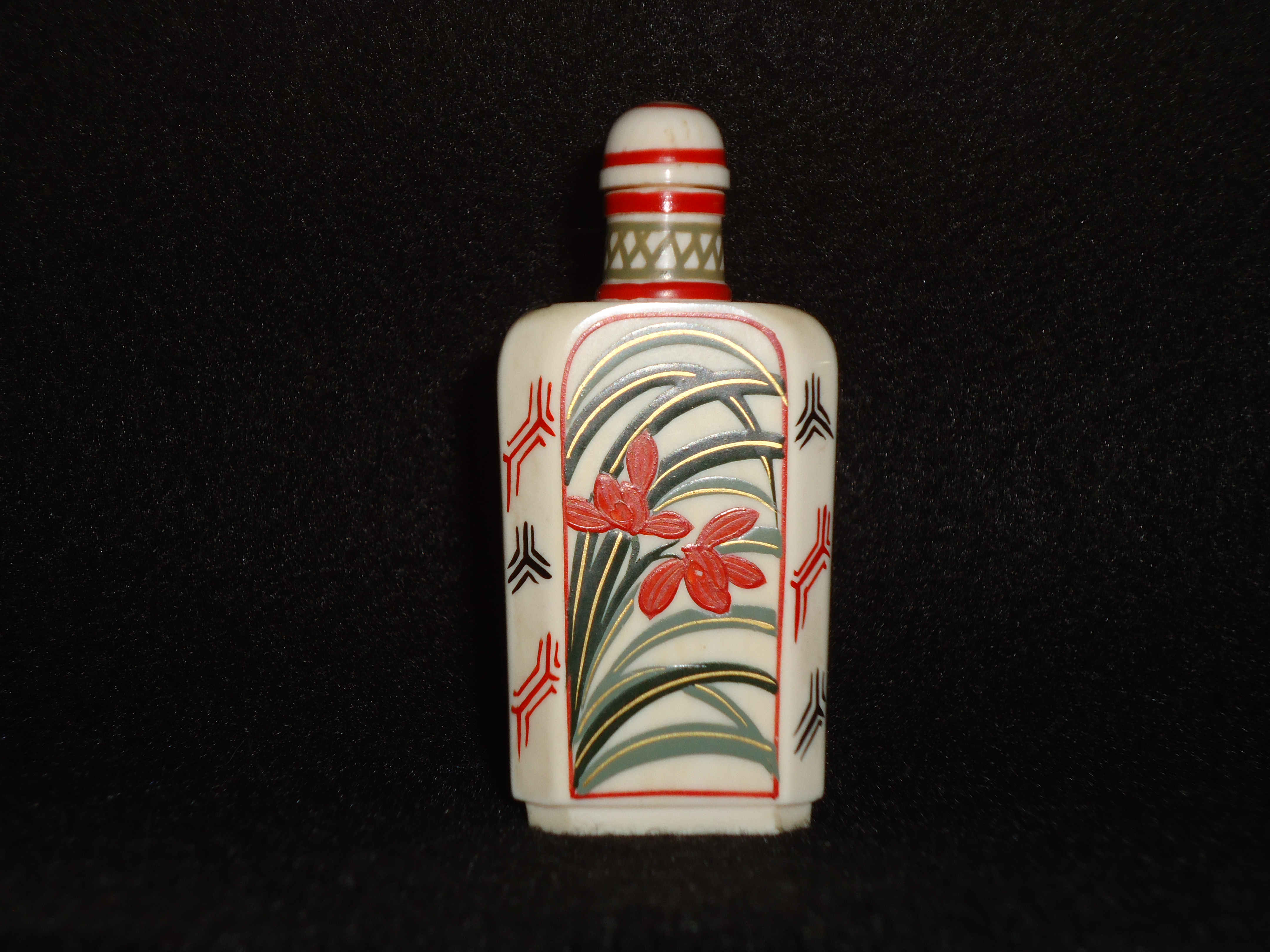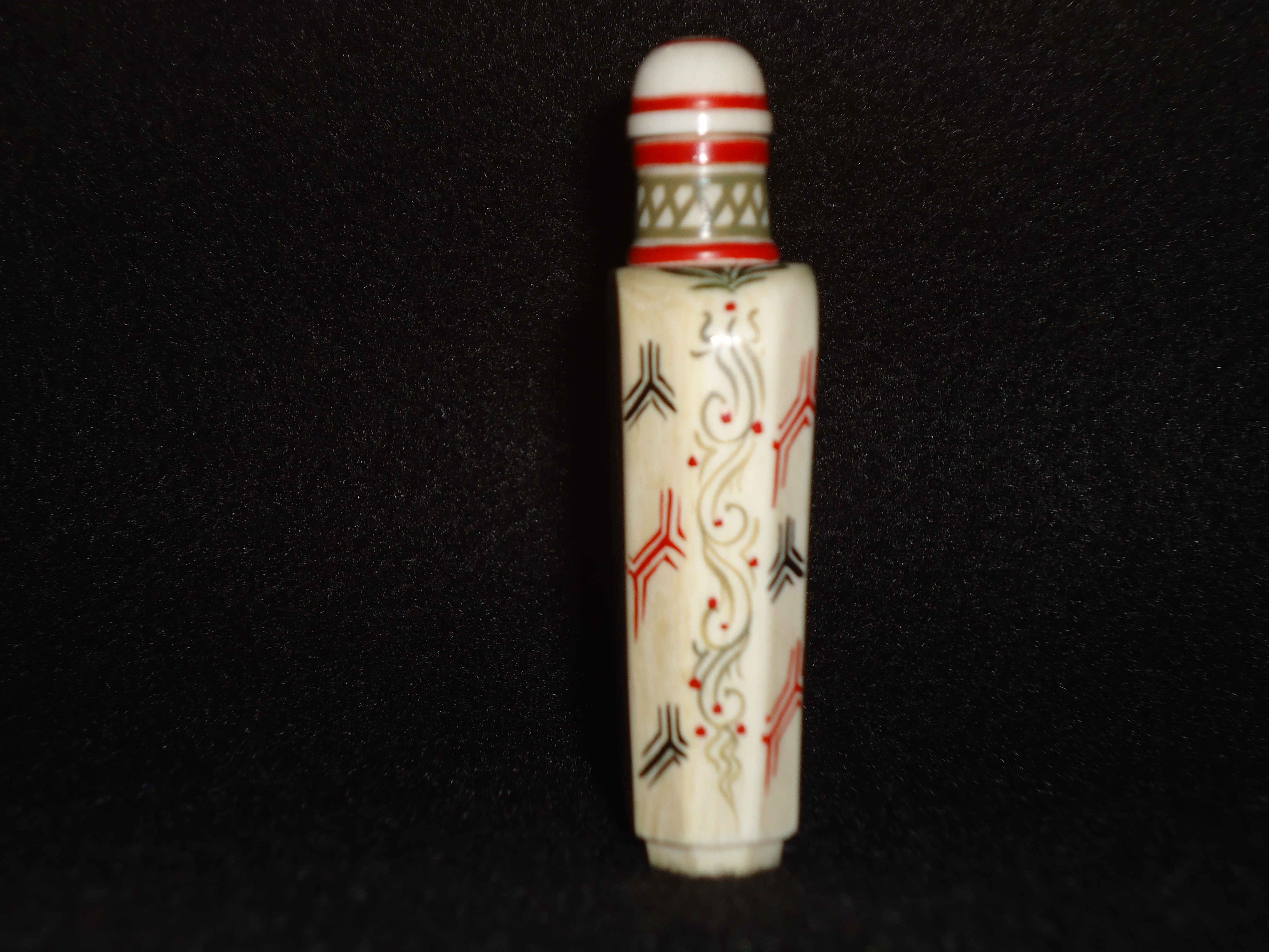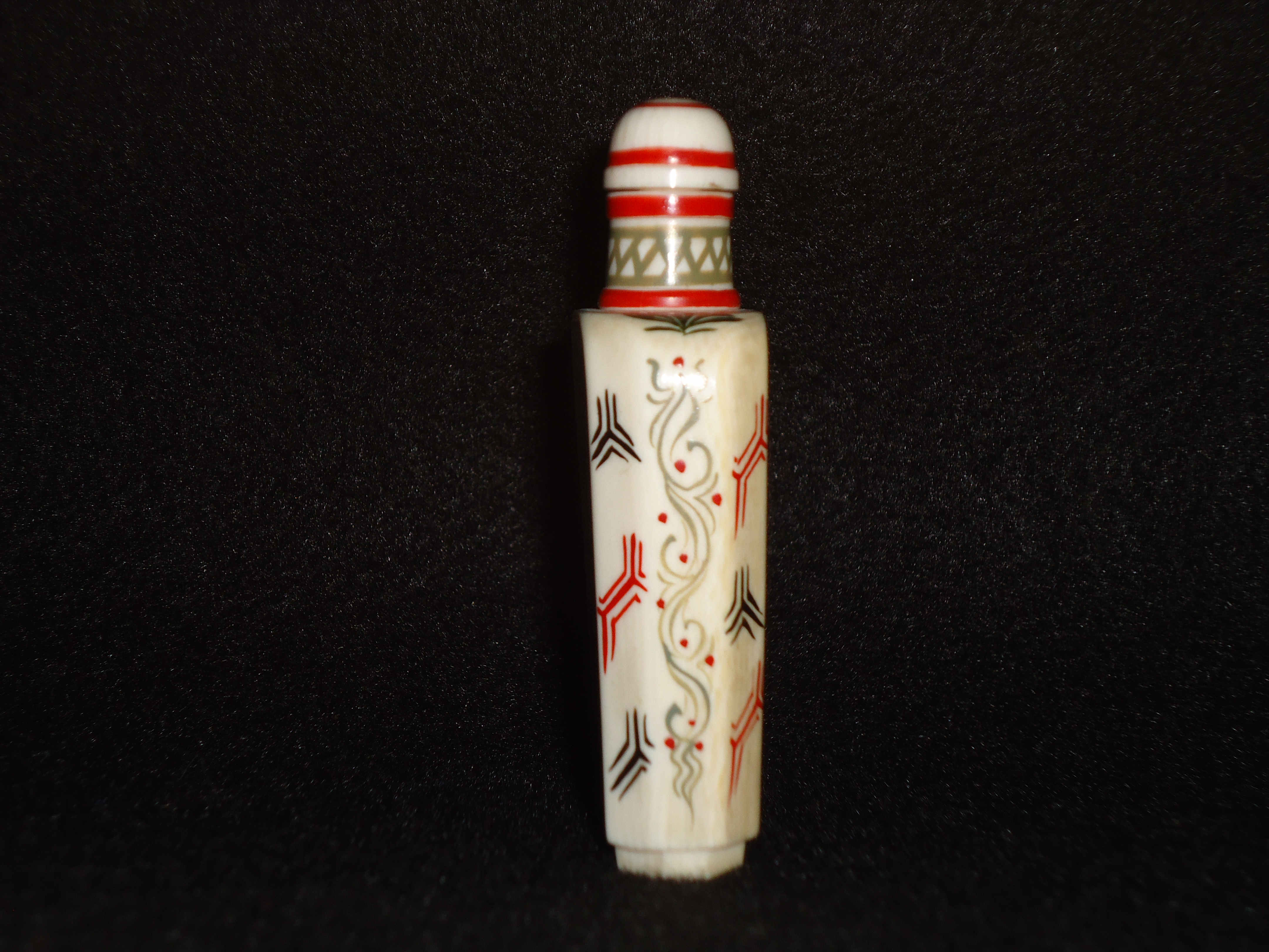 This is a signed Netsuke snuff bottle with invory carved spoon in the cap