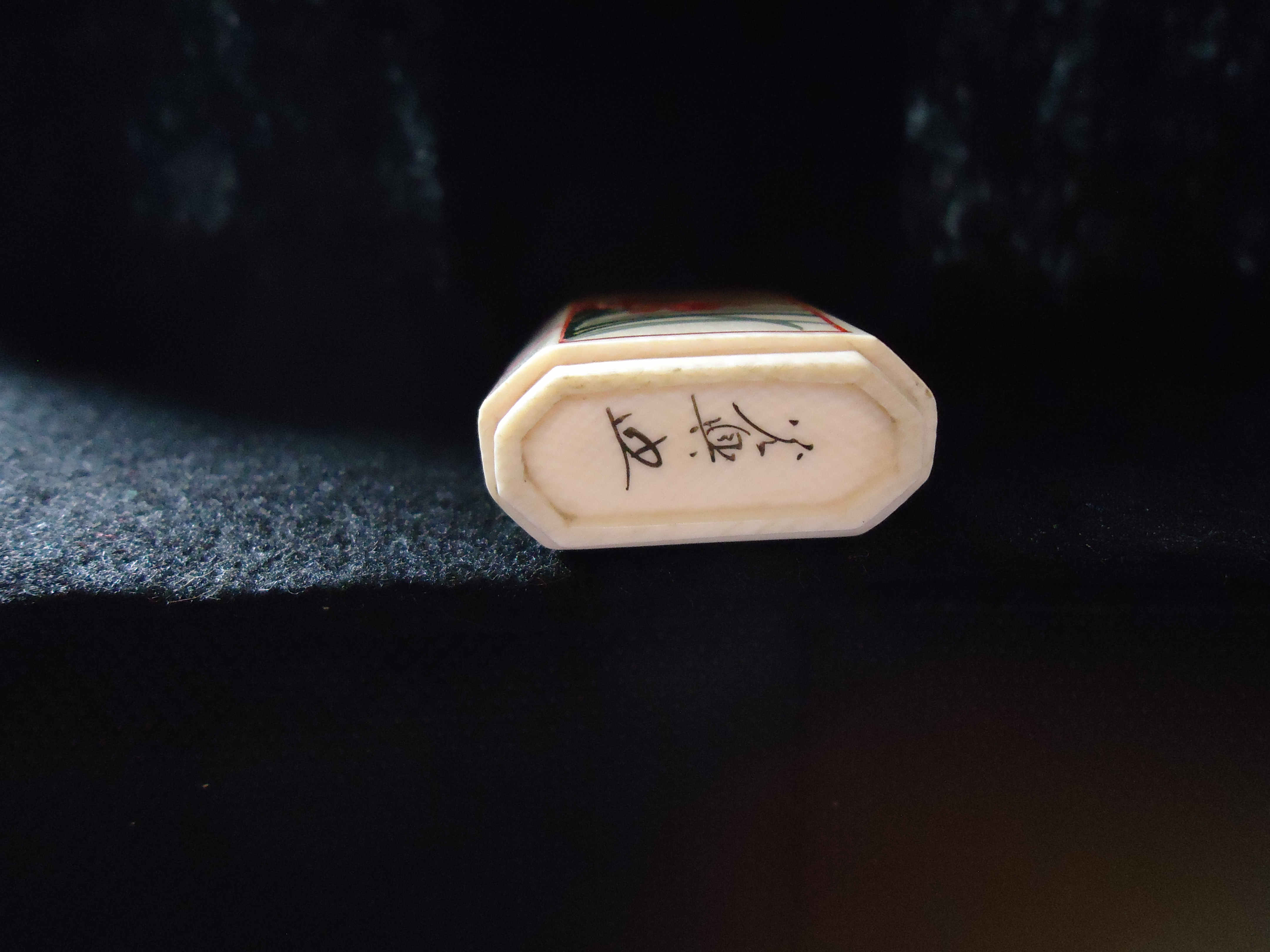 Ivory signed snuff bottle with spoon in the cap