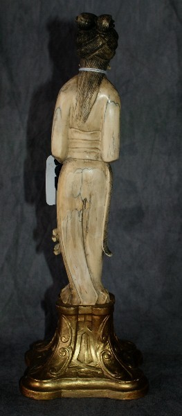 18/19th C Chinese carved ivory Quan Yin figure on a carved gilt-wood base. Ivory" 9" with base: 11 1/2