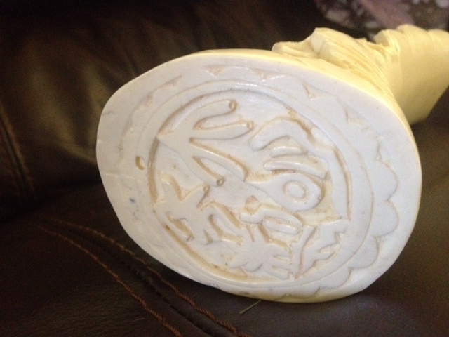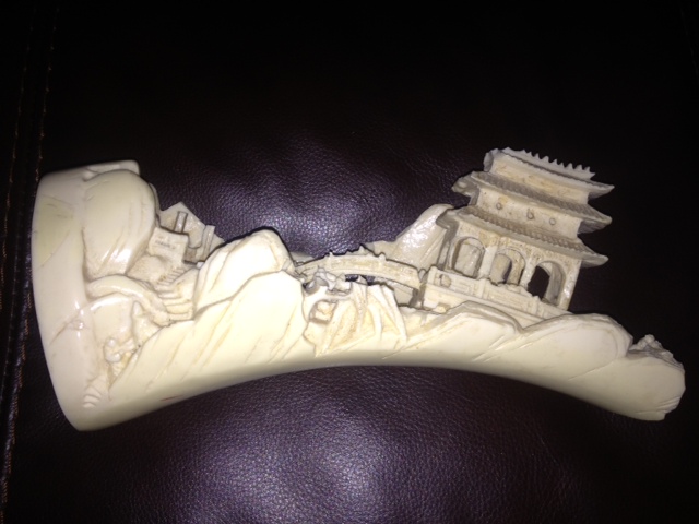 this piece here is a ivory carving with a stamp at the bottom.