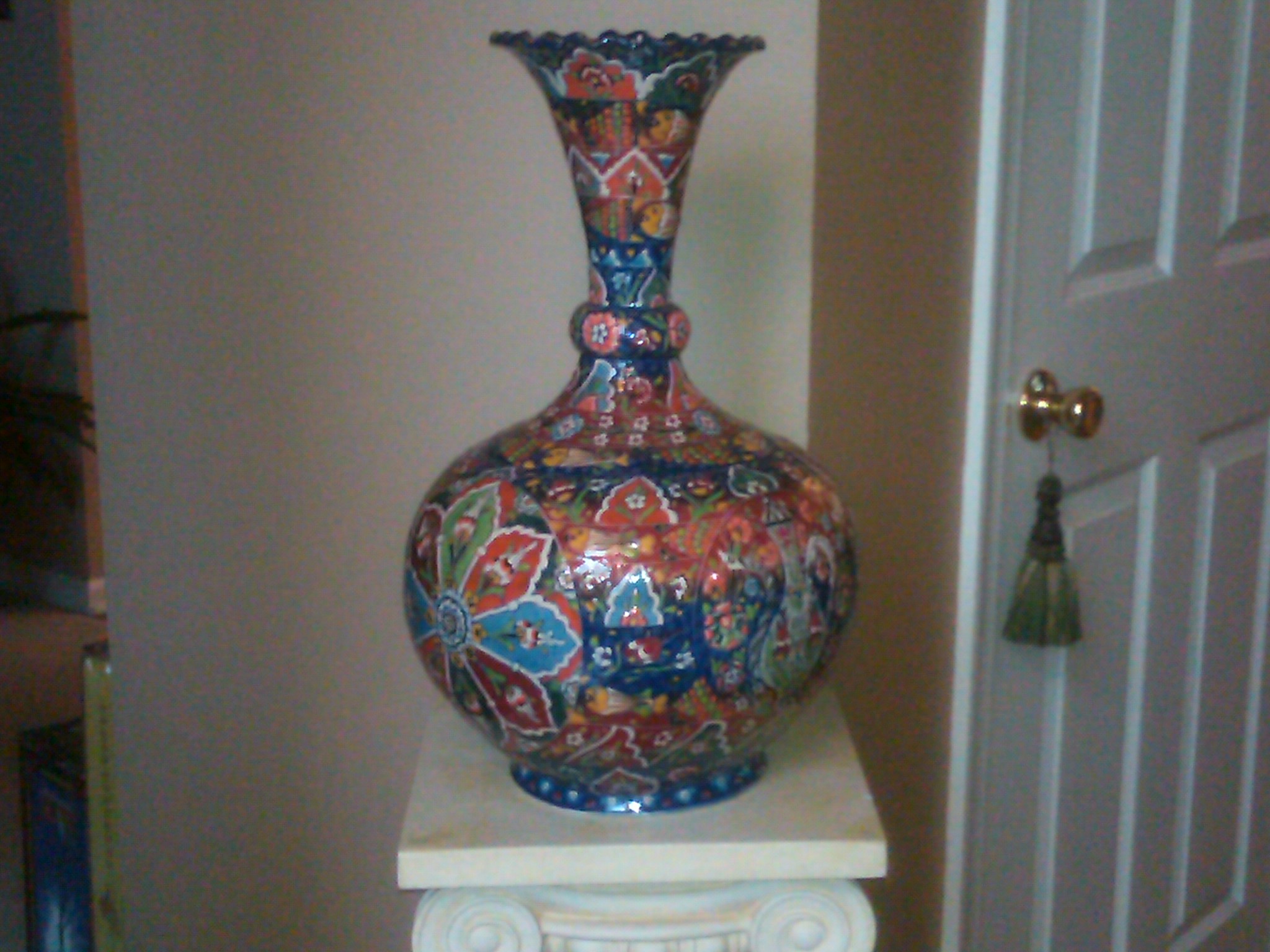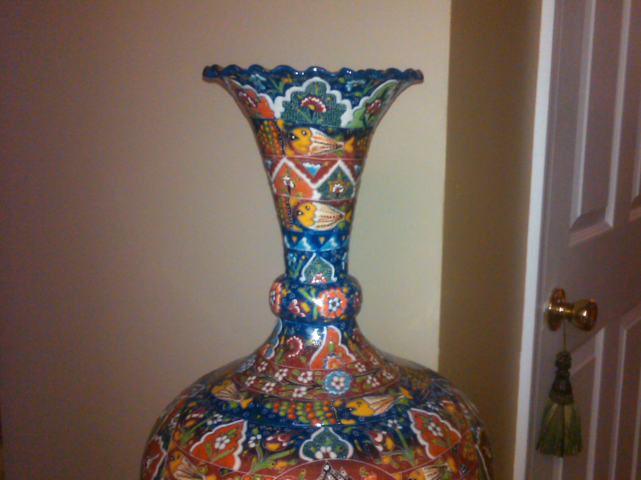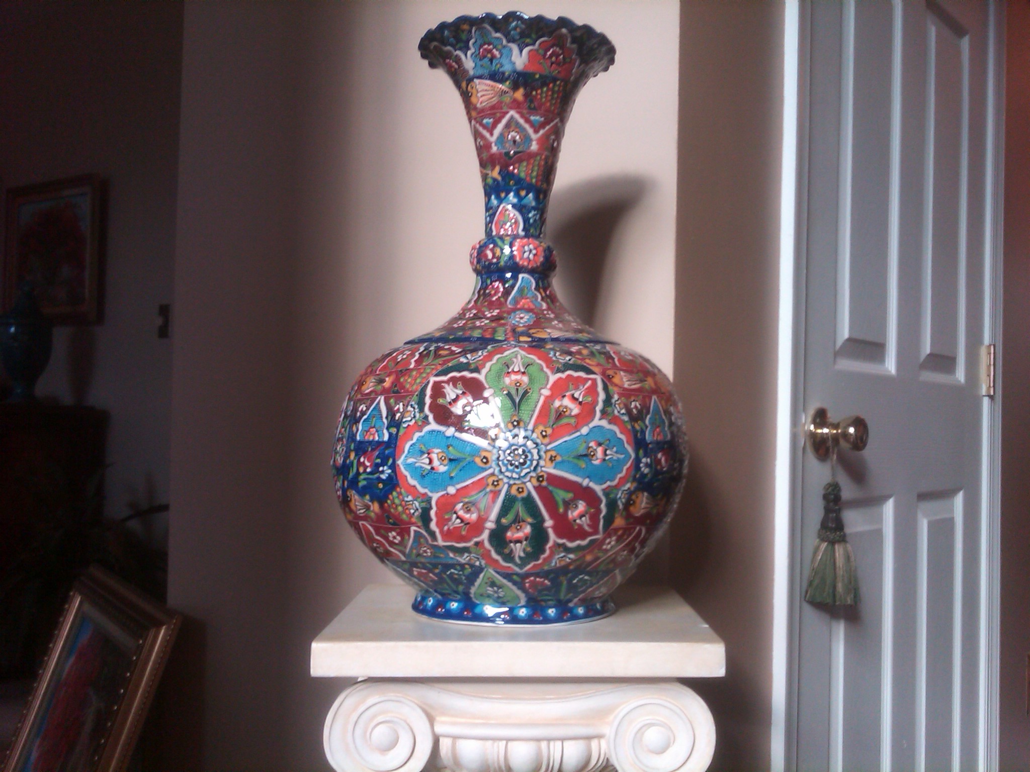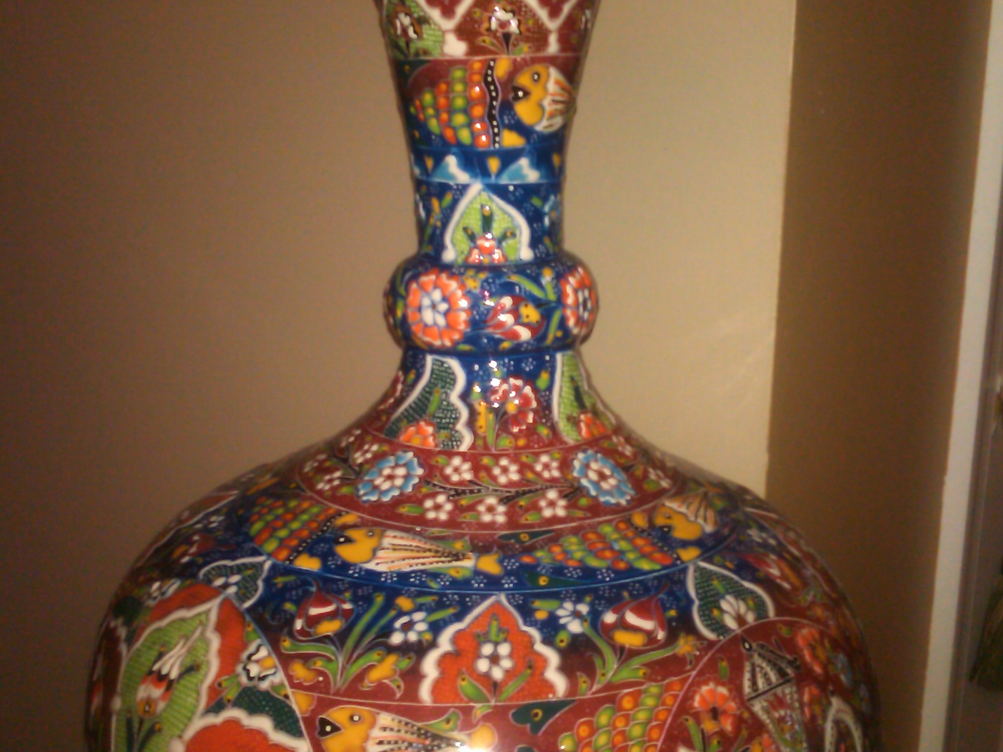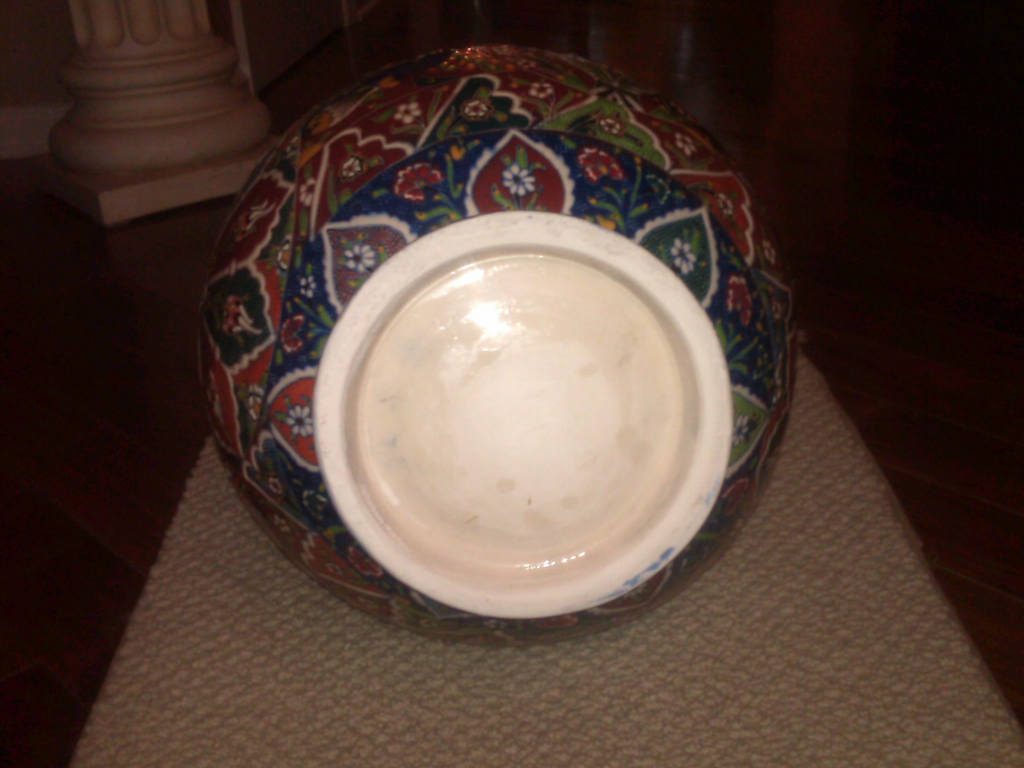 This is a vase supossely made of Iznik with the ottoman design and I'd like to know if it is really Iznik. It doesn't have any signature, the designs are not all strait as you could see in the pictures. Whatever it is, I would also like to know its price.