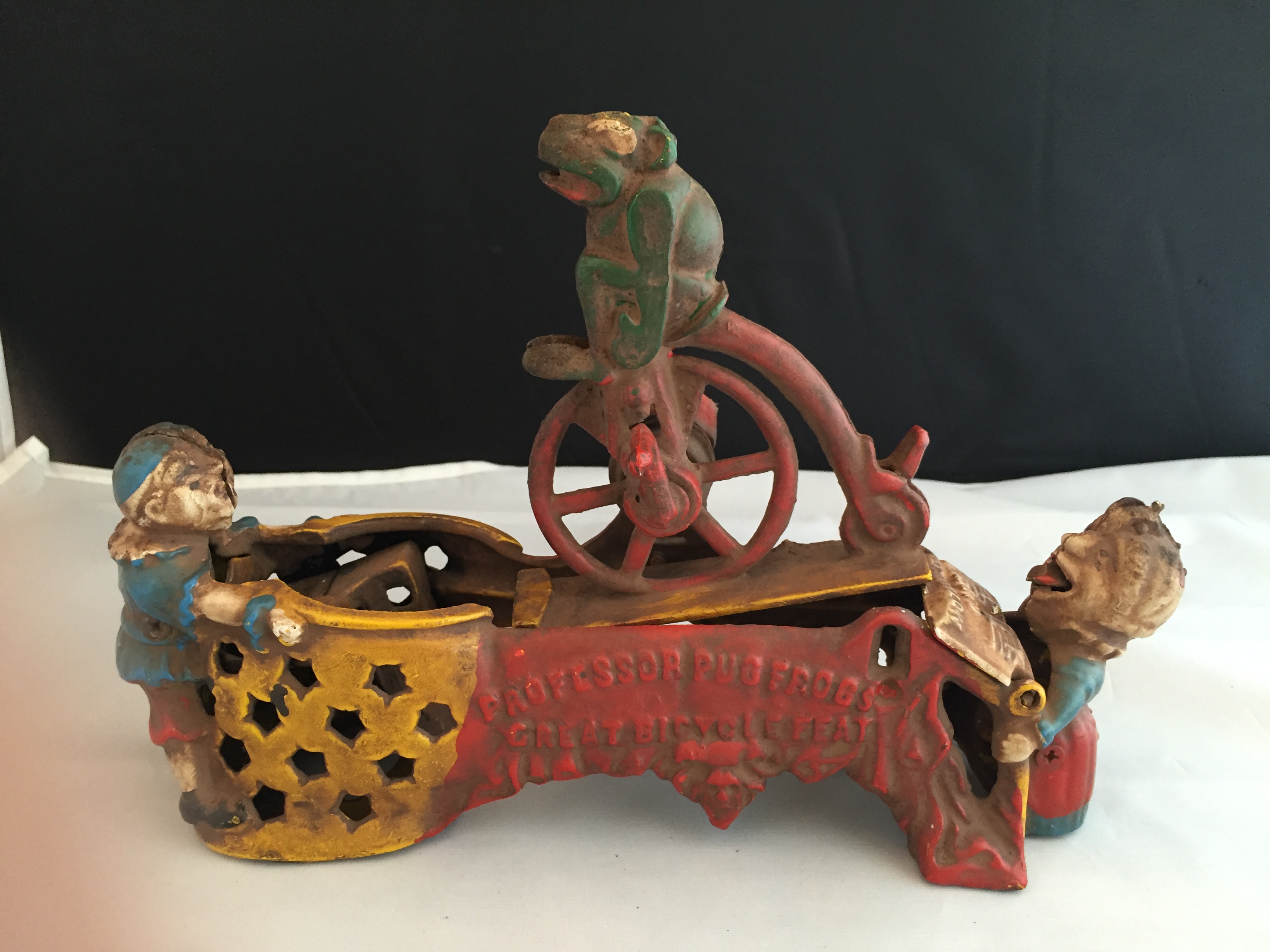 I'm completely new to the vintage/antique world and need some help ! The banks I am attaching here I have identified as J & E Stevens and I'm fairly certain one of them is not an original ..however , searching on line I am finding many variations with a few looking like reproductions but selling as originals .. thus confusing me more .. I have not cleaned them other than to dust off some of the details ..and I'm worried I may hurt them in some way.. They are working and have no major visible flaws -