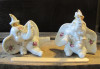 I have 4 porcelain figurines, each about 4 inches high and about 2-3 inches wide and deep. One figurine is a music conductor (picture files start with the letters COND. Another figurine is a woman in a blue dress (perhaps a dancer) and the picture files start with the letters BLUE. The third figurine is a dancer in a pink dress with one hand down and the picture files start with the letters pinkHDWN. The fourth figurine is a dancer in a pink dress with both hands up and the picture files start with the letters pinkHUP. I have included a picture from the front of the figurine and a picture of the bottom of the base.