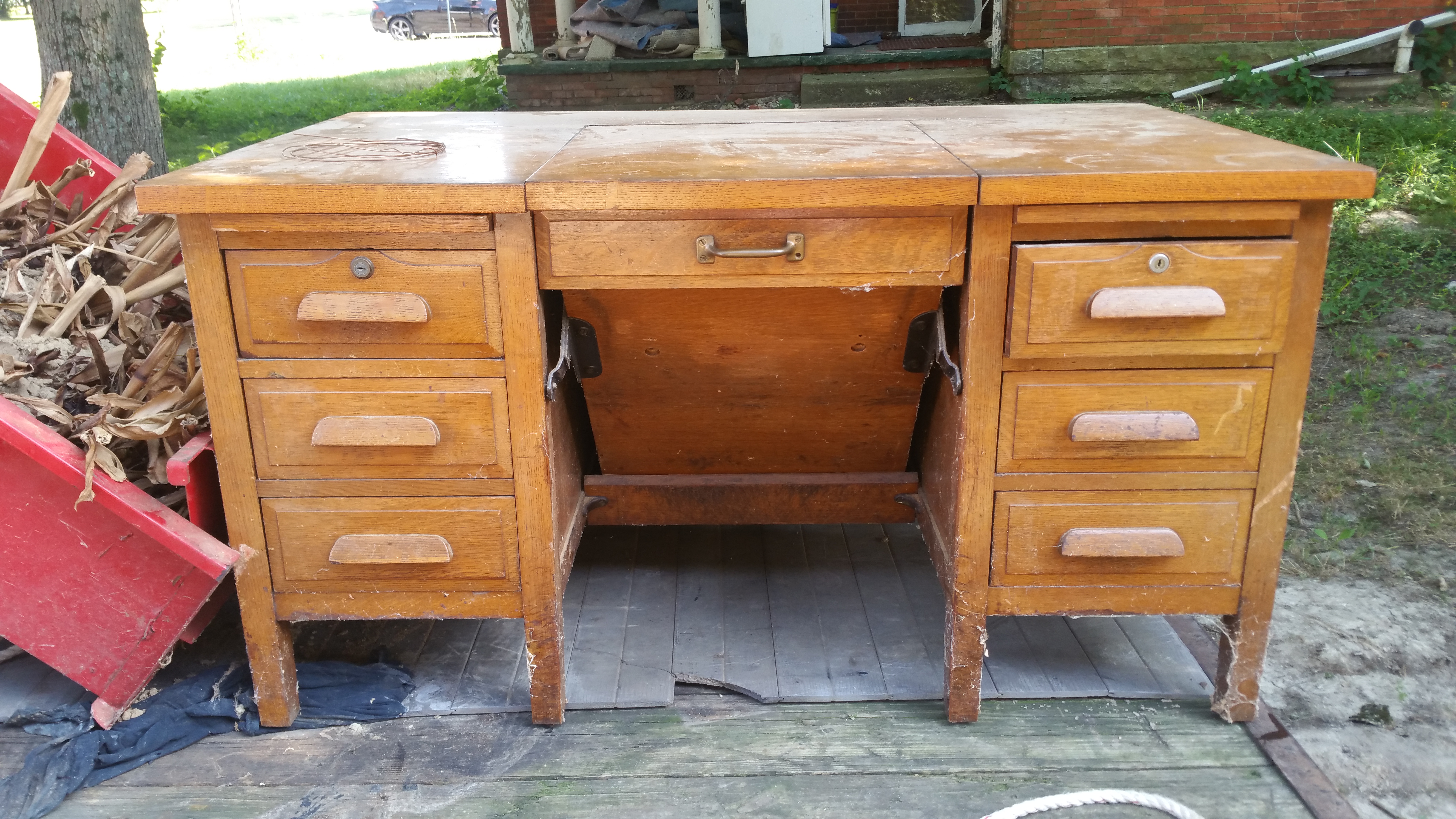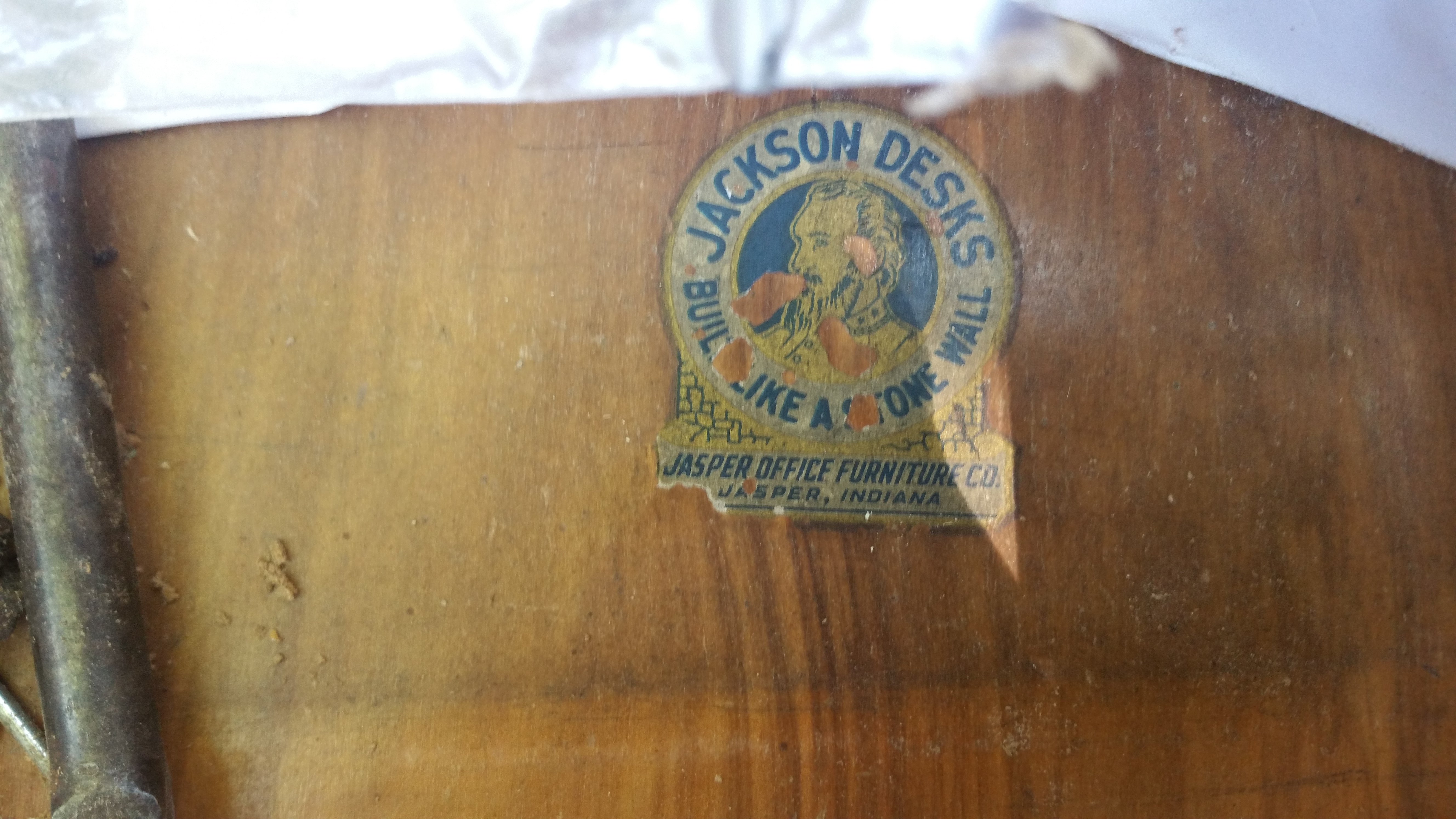 6 drawer desk with jackson desks "built like a stone wall" imprinted in top left drawer