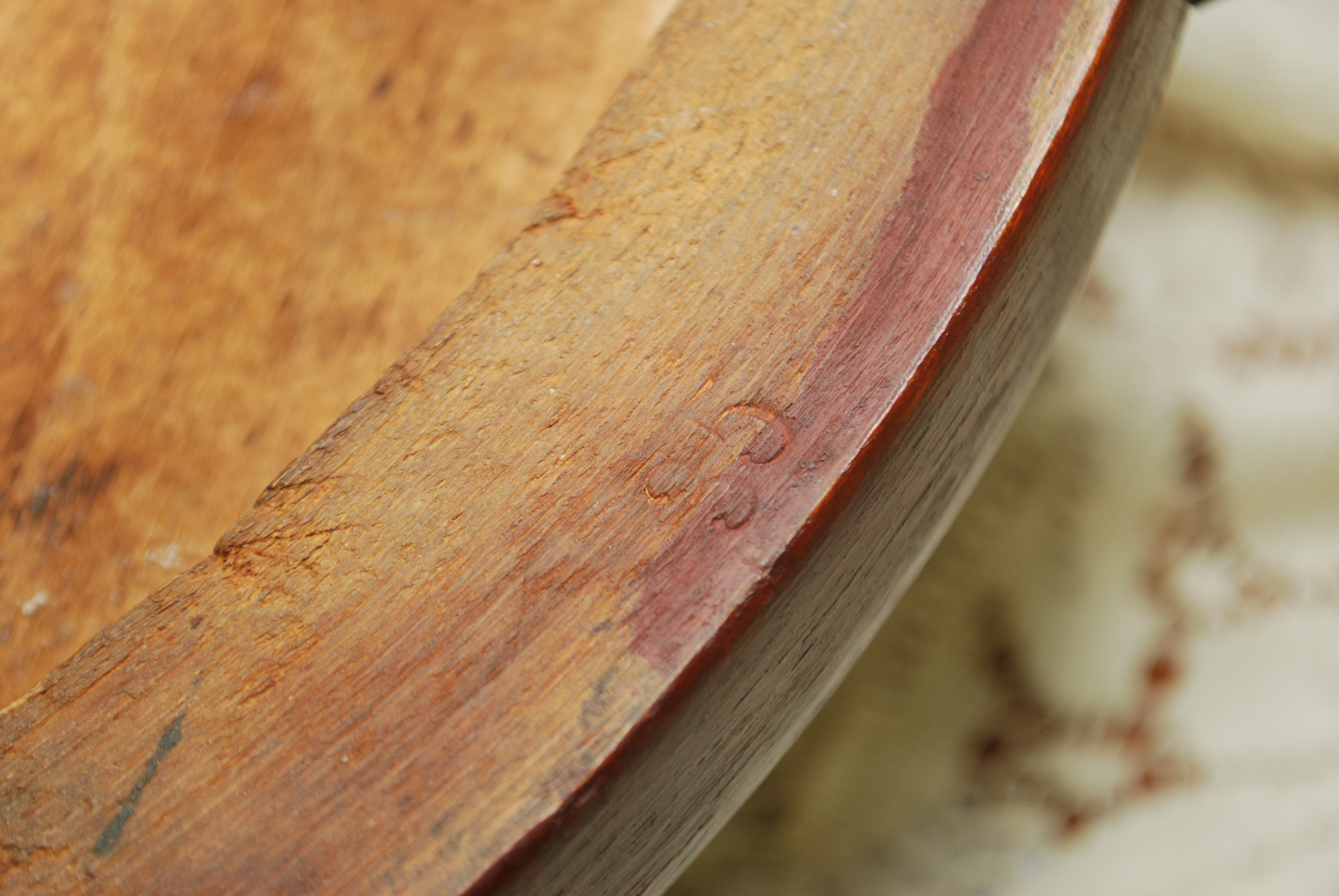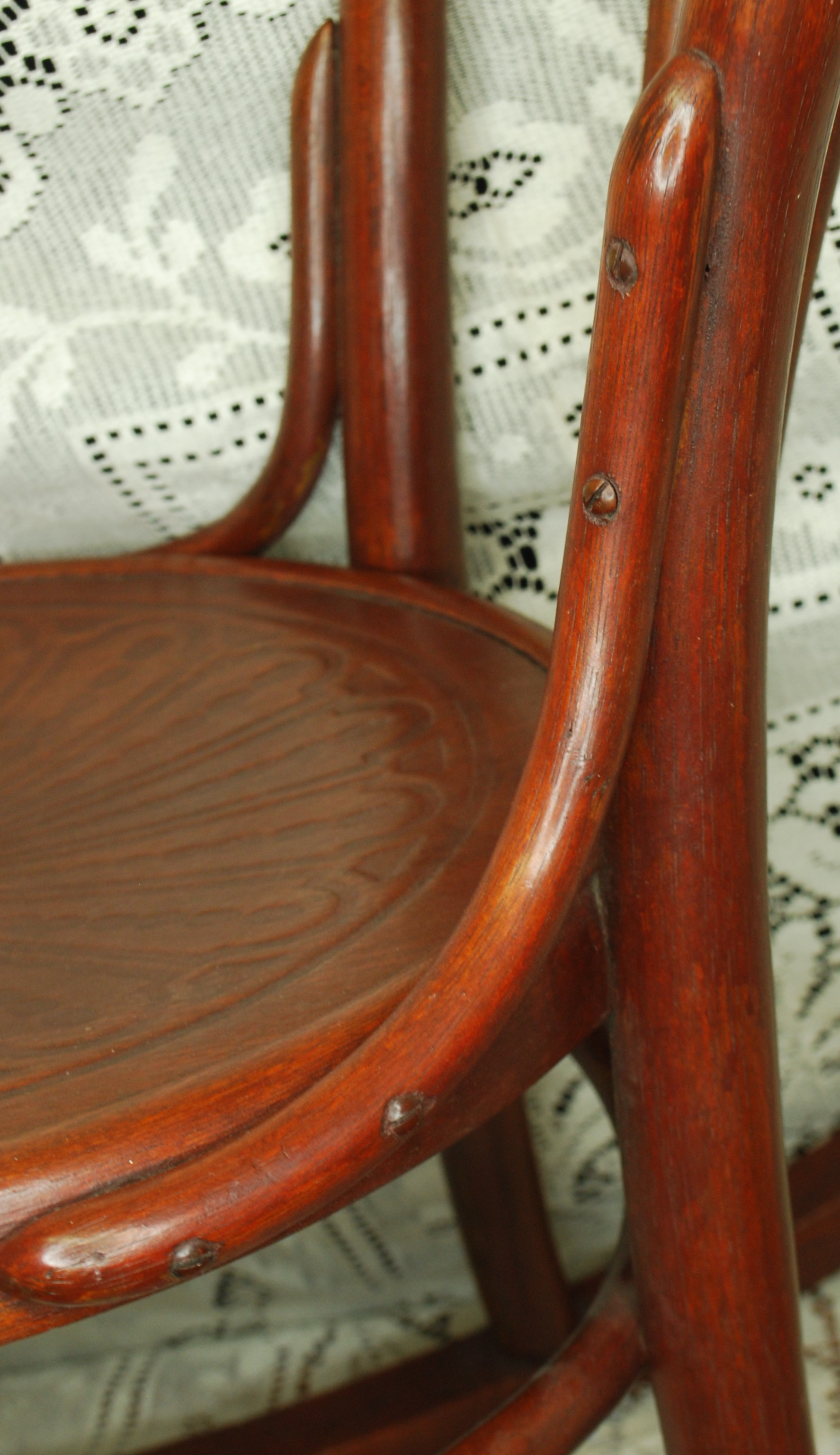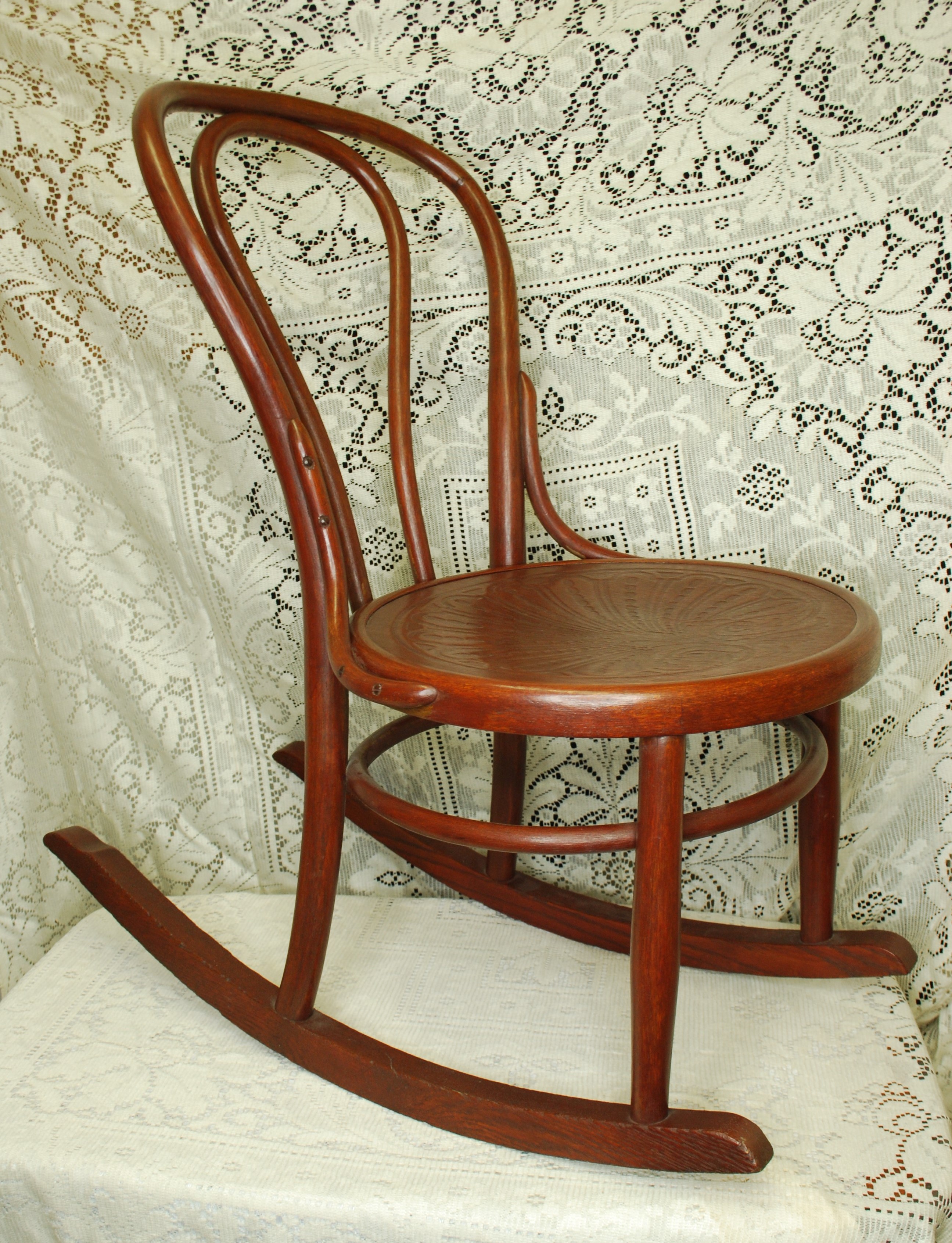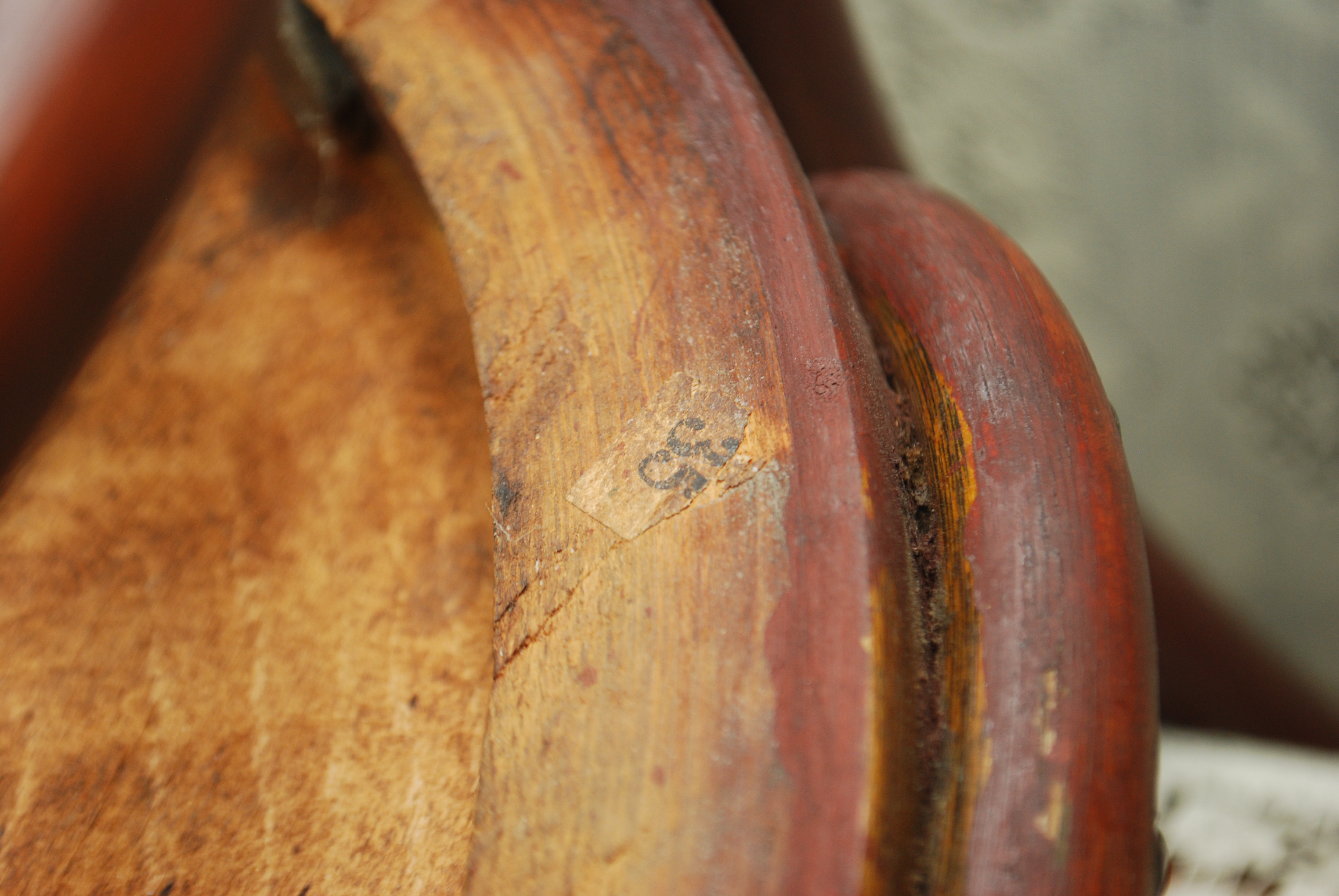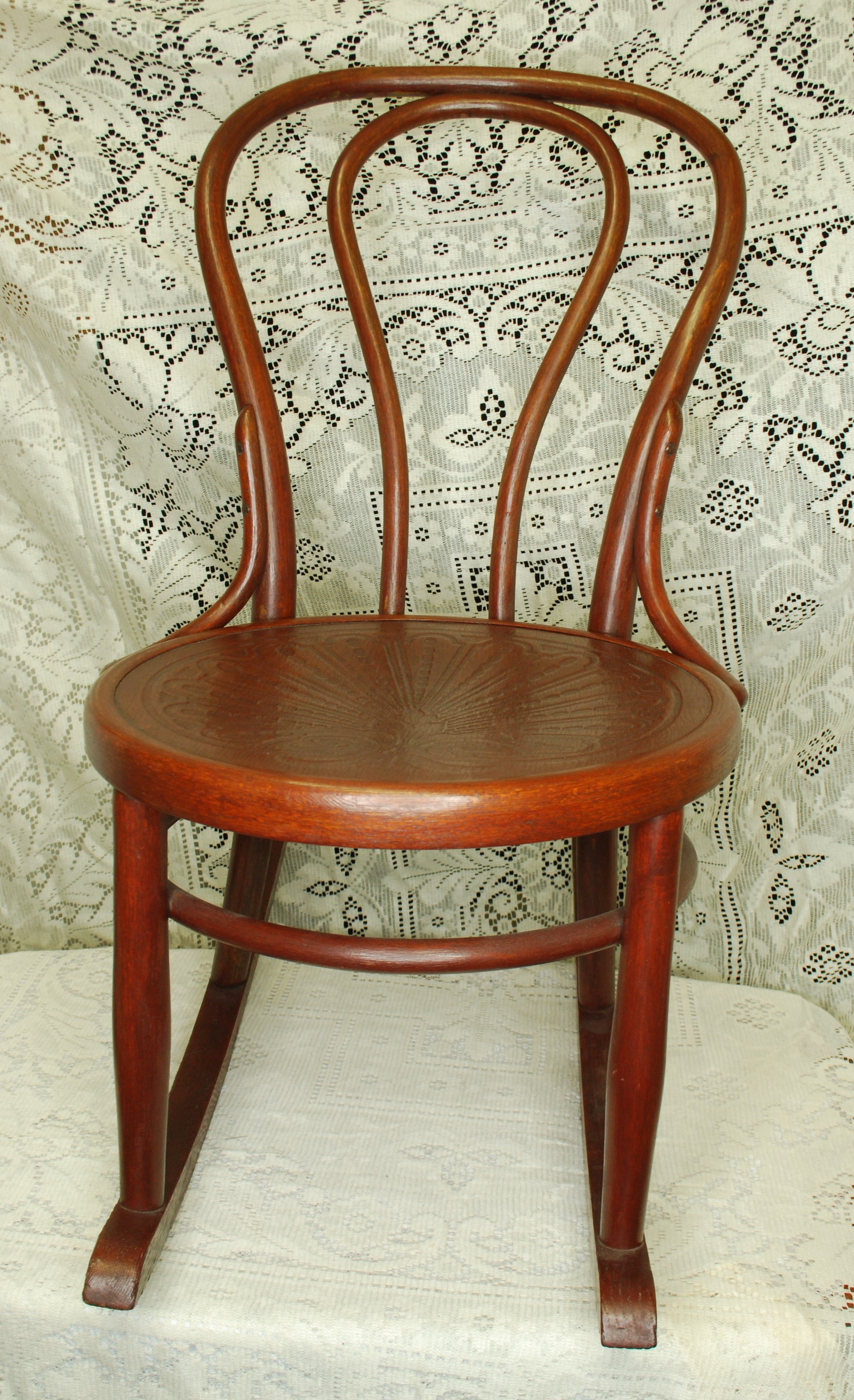 Picked this up at a recent estate sale. Has all the paper labels as well as being marked "35". Unable to locate a catalog on this rocking chair. Seat is about 15" off the ground and 16 1/2" across. Height of the back is just over 30". Everything appears original.