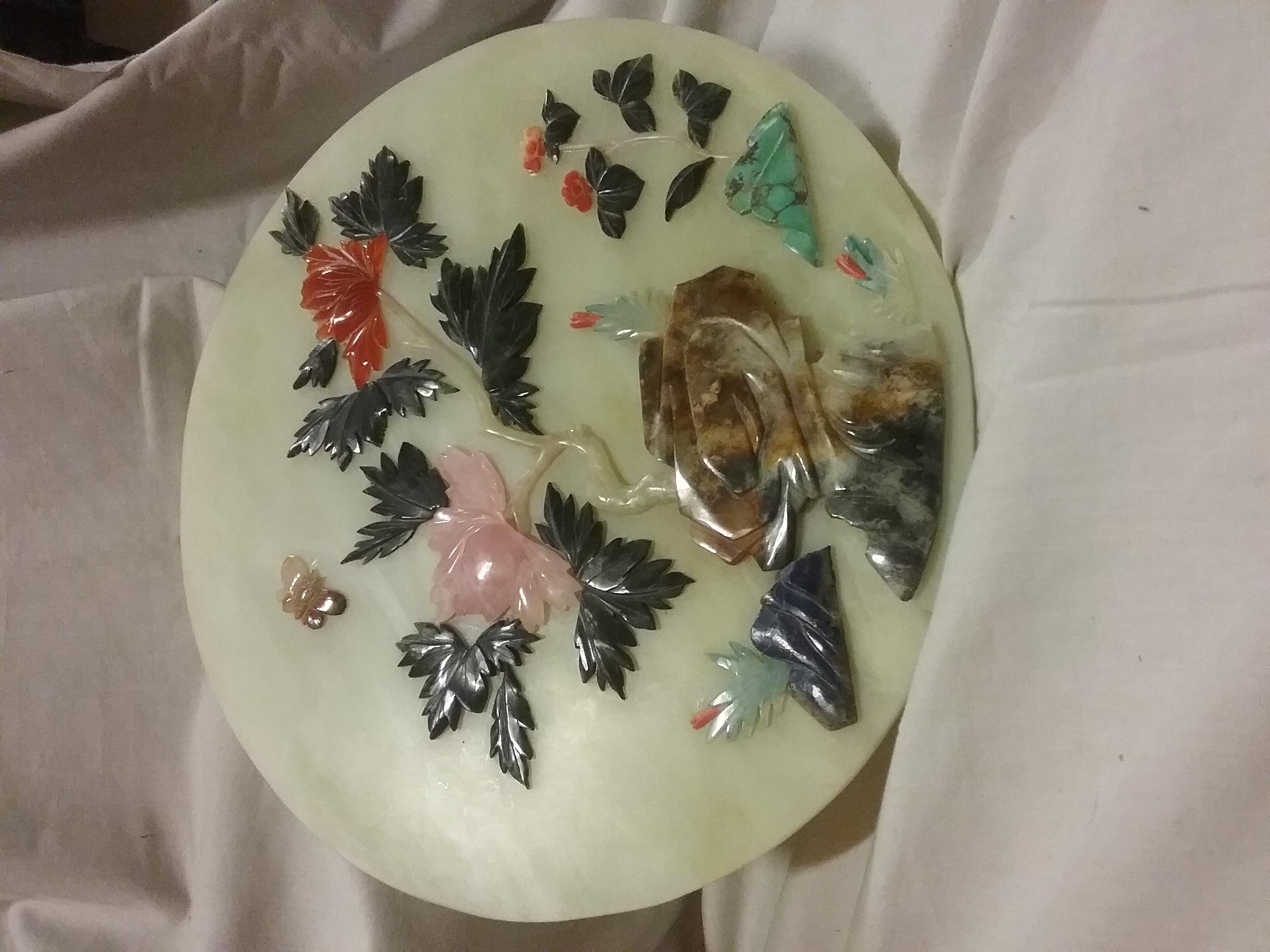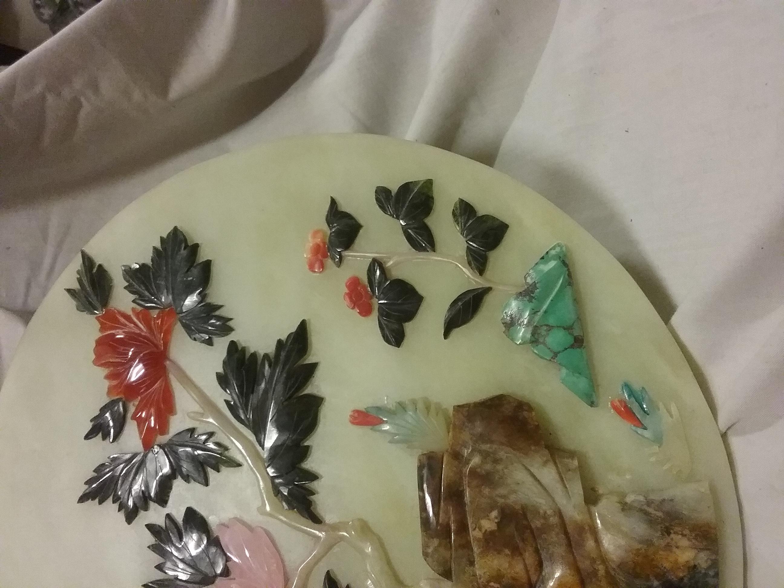 Hi all, i have a beautiful jade table screen in the form of a plate which sits on a carved stand. It has a picture of a tree that is entirely made from different pieces of jade that are all different colours. The plate itself has been ground down except for the trunk of the tree,then different pieces of jade in the shape of a rock,leaves, and theres even a bee carved from jade flying around have been added to make a picture. This is one of my favorate pieces in my collection. I searched online and found one very similar to mine for sale for $2500.00, is mine worth that too ?