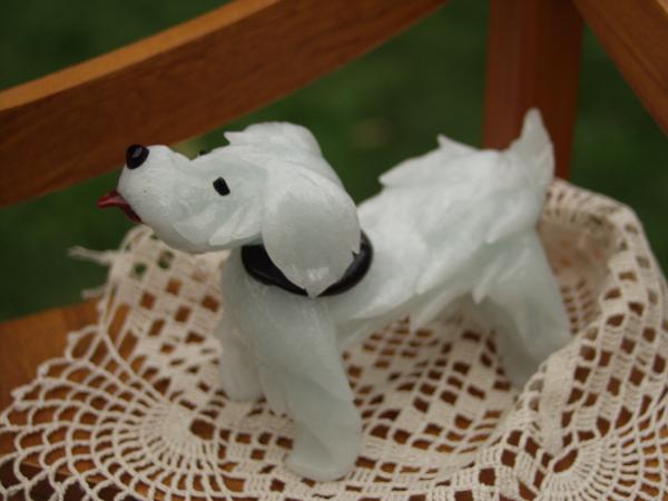 Jadeite/Nephrite carved dog with black eyes,nose ,collar.