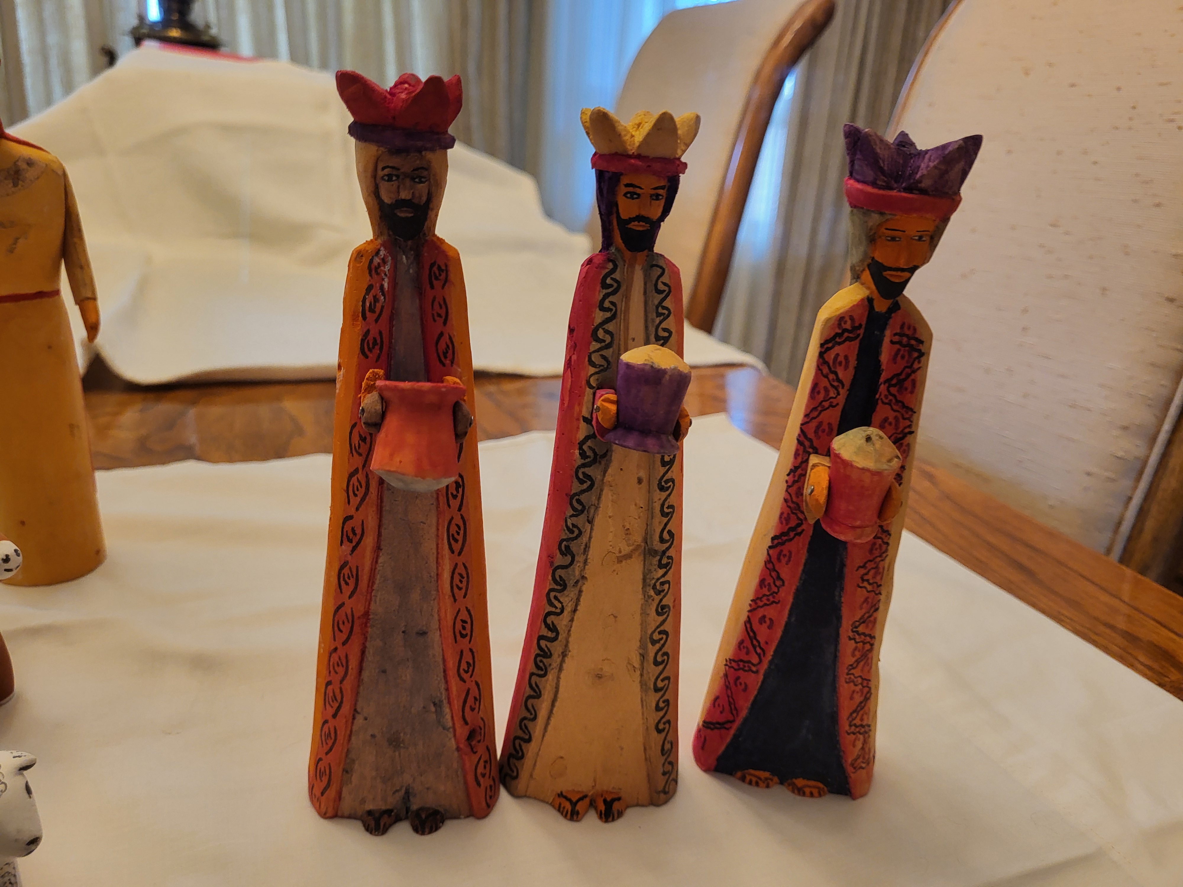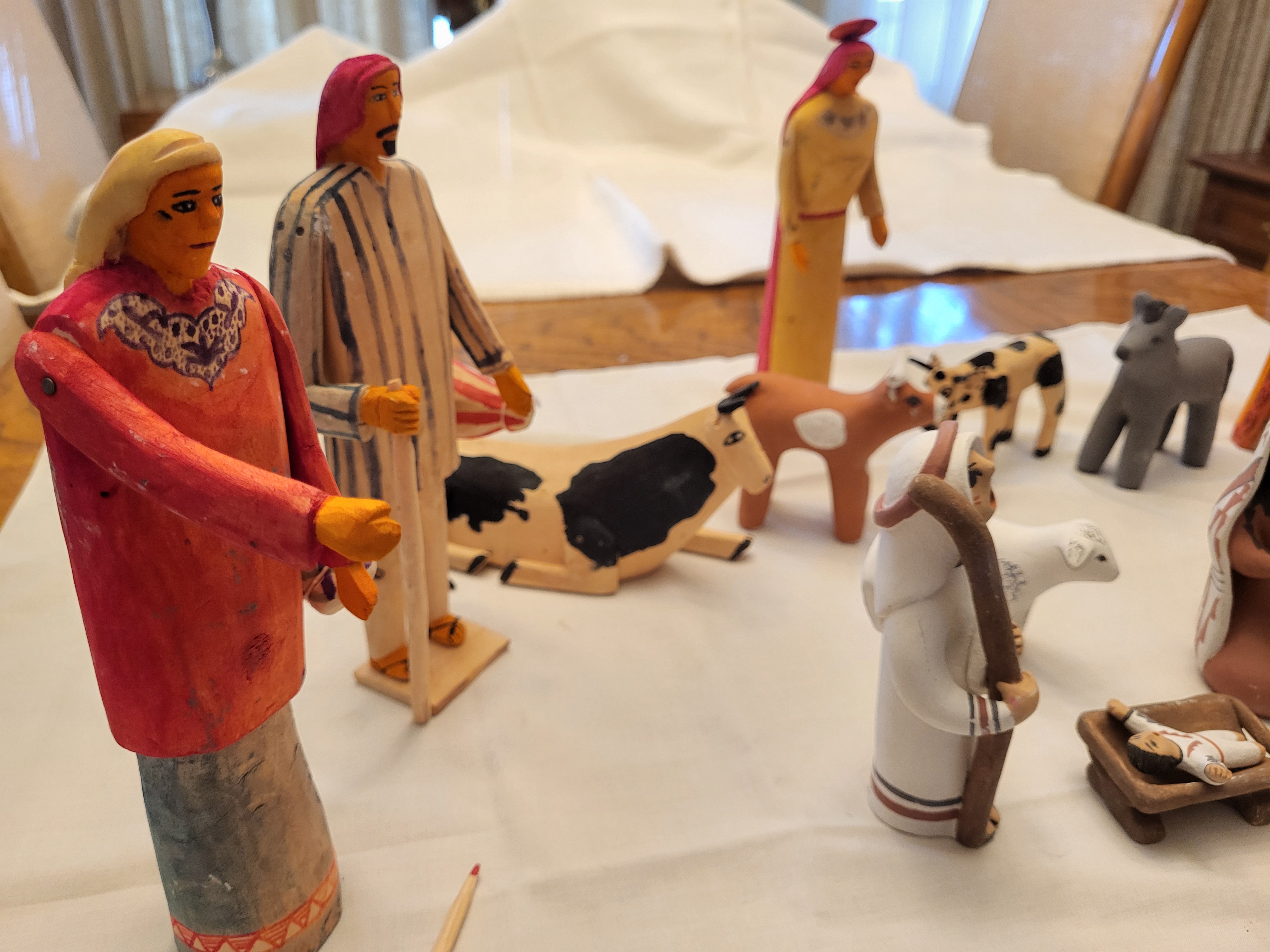 Documentation such as purchase receipts, artist statements, or exhibition records would enhance the value of this nativity scene. Researching local galleries or artisan markets where Jaime Santiago's work is sold can provide additional provenance.