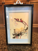 Vase hase two copper pheasants with flowers (possibly kosumosu) painted on the front of the vase. The vase is painted with a chestnut brown throghout. The neck has a gold colored rim.