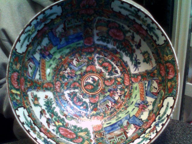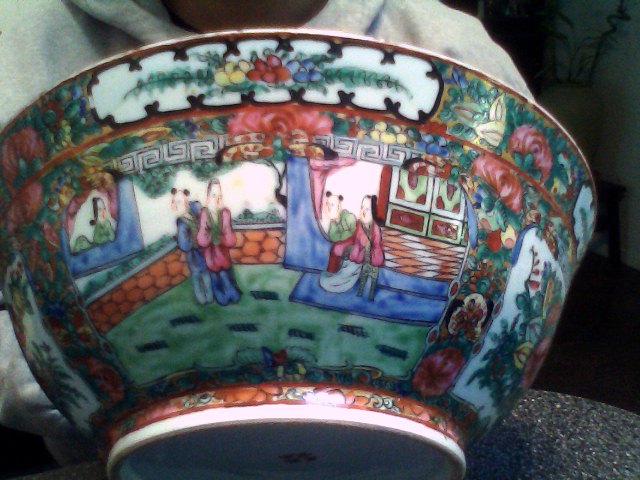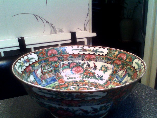 This particular Japanese bowl was valued by a collector at $500.00 the late 60's.It contains detailed engravings of both women and men going about their daily lives.The piece is in excellent shape and contains exuberant colors making it both an excellent collectors item as well as centerpiece for a coffee or dining room table.
