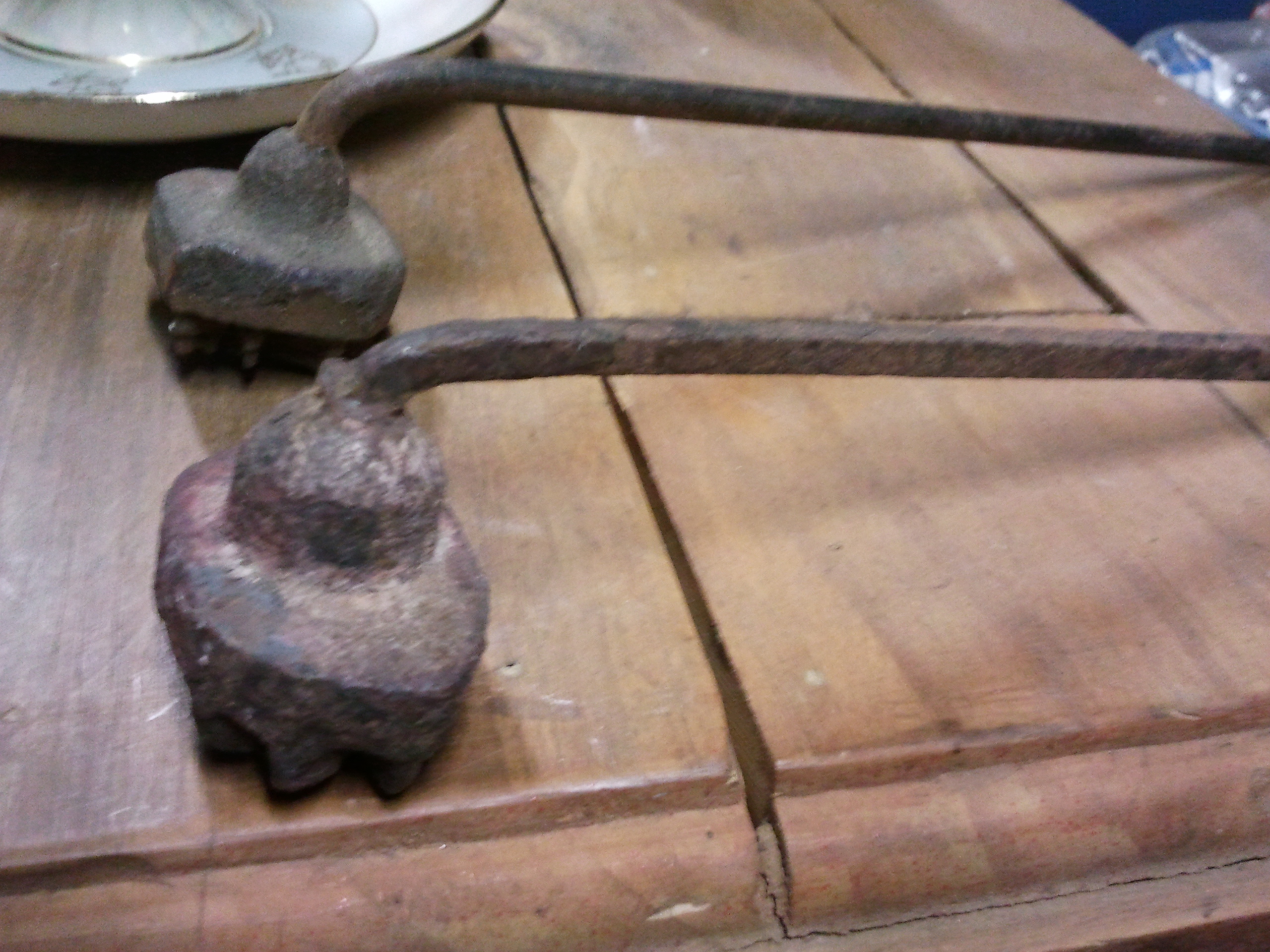 i know next to nothing about these. i believe they are japanese, i dont believe the handle is the original, solid iron/steel construction, a little over 1' in lenght.