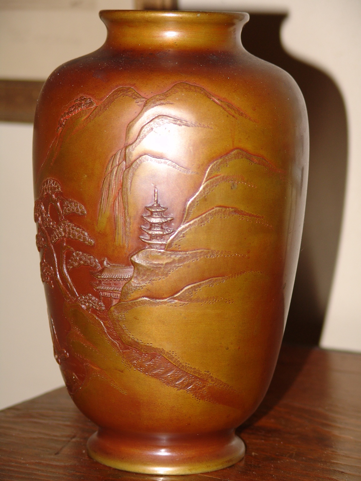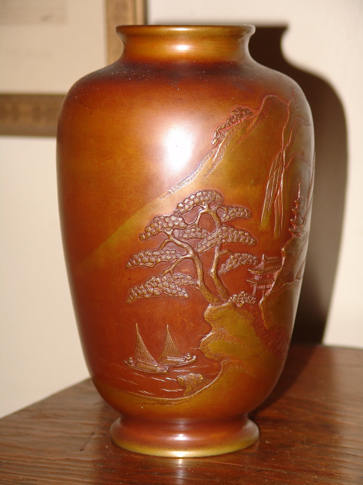 This bronze vase was brought back to the US by my great uncle just after WWI.  I believe it is Meiji period (1900).  Vase is marked on the bottom with what looks to be the Kanji "sen" which means "exclusive".