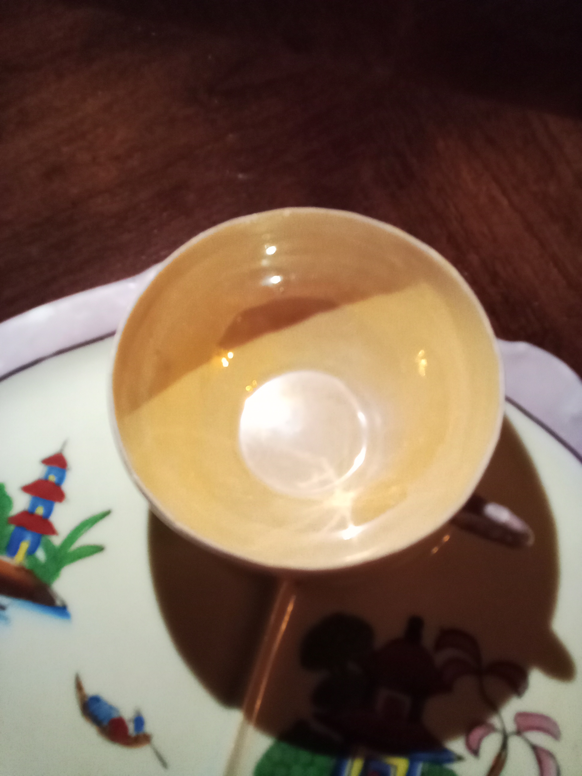 Set of Japanese china snack set. Set of 6 plates, 6 cups. No chips, scratches, cracks, or staining. These are absolutely perfect. The china is so thin on the cups, you can see your finger on the other side. The inside of the cup looks like lusterware. The stamp on the back says Made In Japan, not Made In Occupied Japan. So these are either really old, or just vintage. I haven't been able to find ANYTHING even resembling these on the internet. I heard these may have been trade items, but I have no idea what that means. I got them at an Estate Sale of a woman who owned an antique store. The stuff she had in her house, according to her daughters, was the stuff she wasn't willing to sell in her store. So that means they're either really valuable, or she just thought they were pretty. I have no idea. Any info you can provide on these would be soooo appreciated. HELP!!!!!!!!