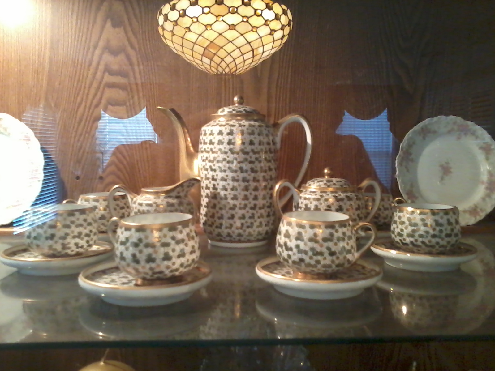 15 piece chocolate set, green and gold in color.   The Giesha girl appears in the bottom of the cups when held up to a light.    I'd love to have a history on the set as well as a value.   Thank you very much for your time.
