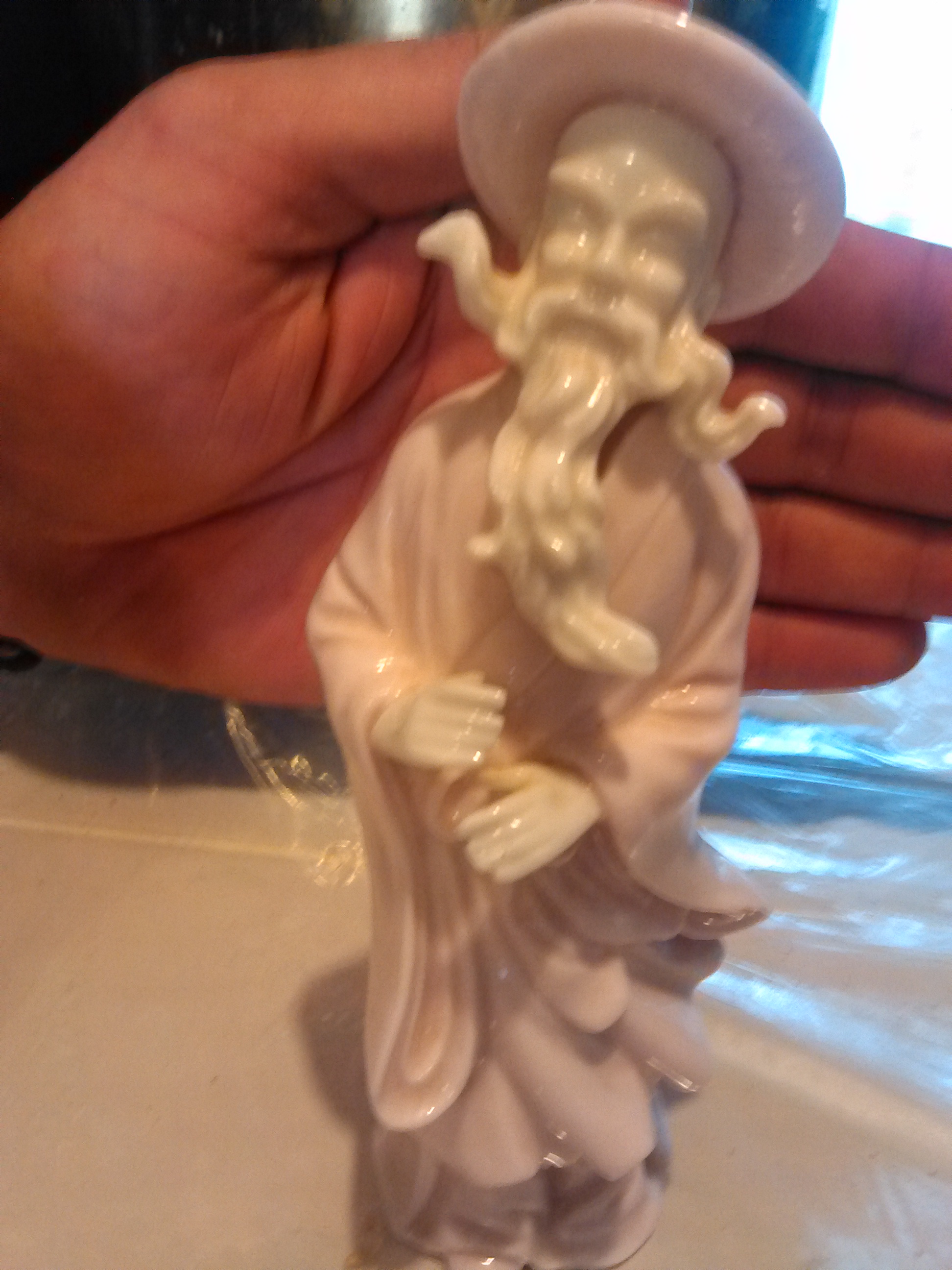 Cream pink and white both have numbers on bottoms and stamps male figure is 6 3/8 tall and 2 inches wide. Female is 6 1/4 tall width 2 wide