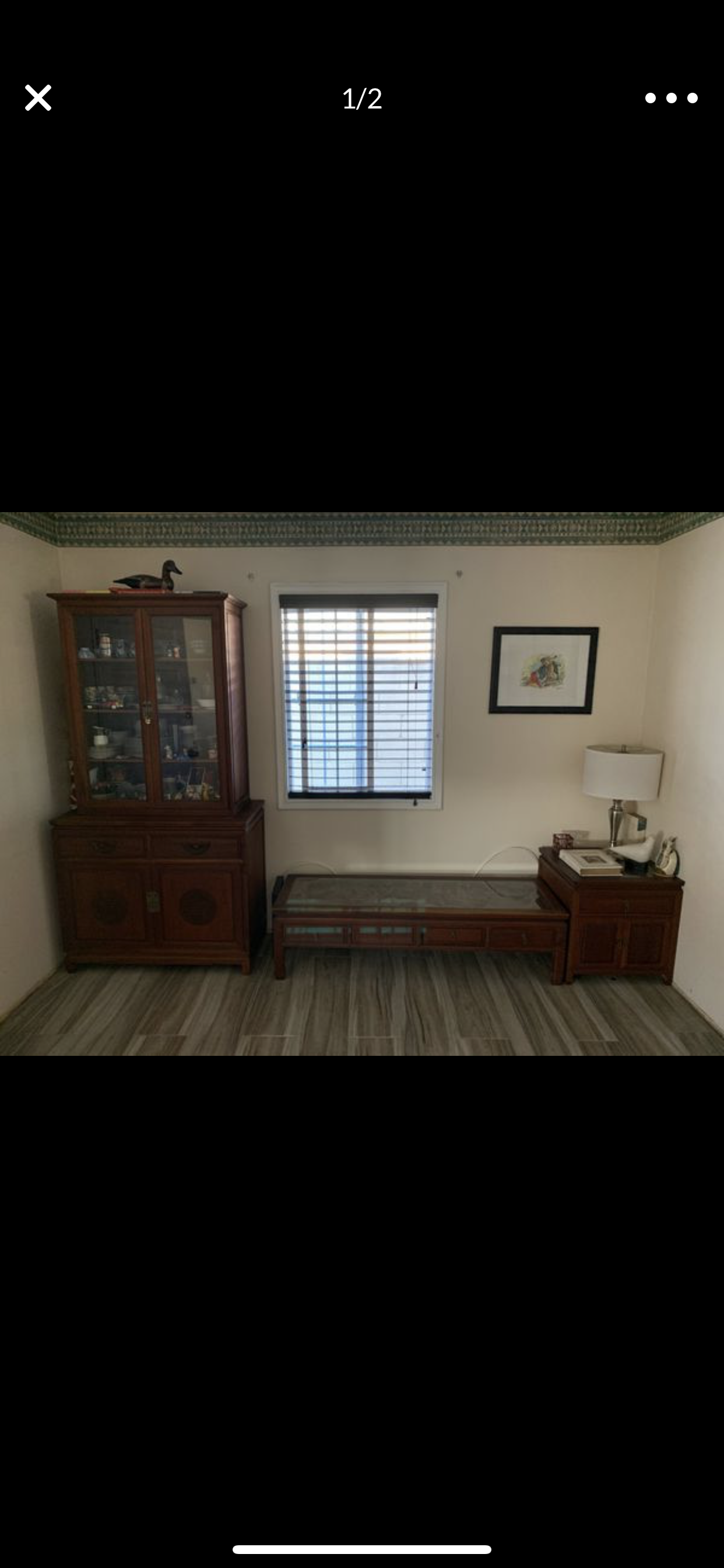 Inherited these Japanese hand crafted coffee and end tables. Glass covered and drawers. I have end tables not shown here in garage.