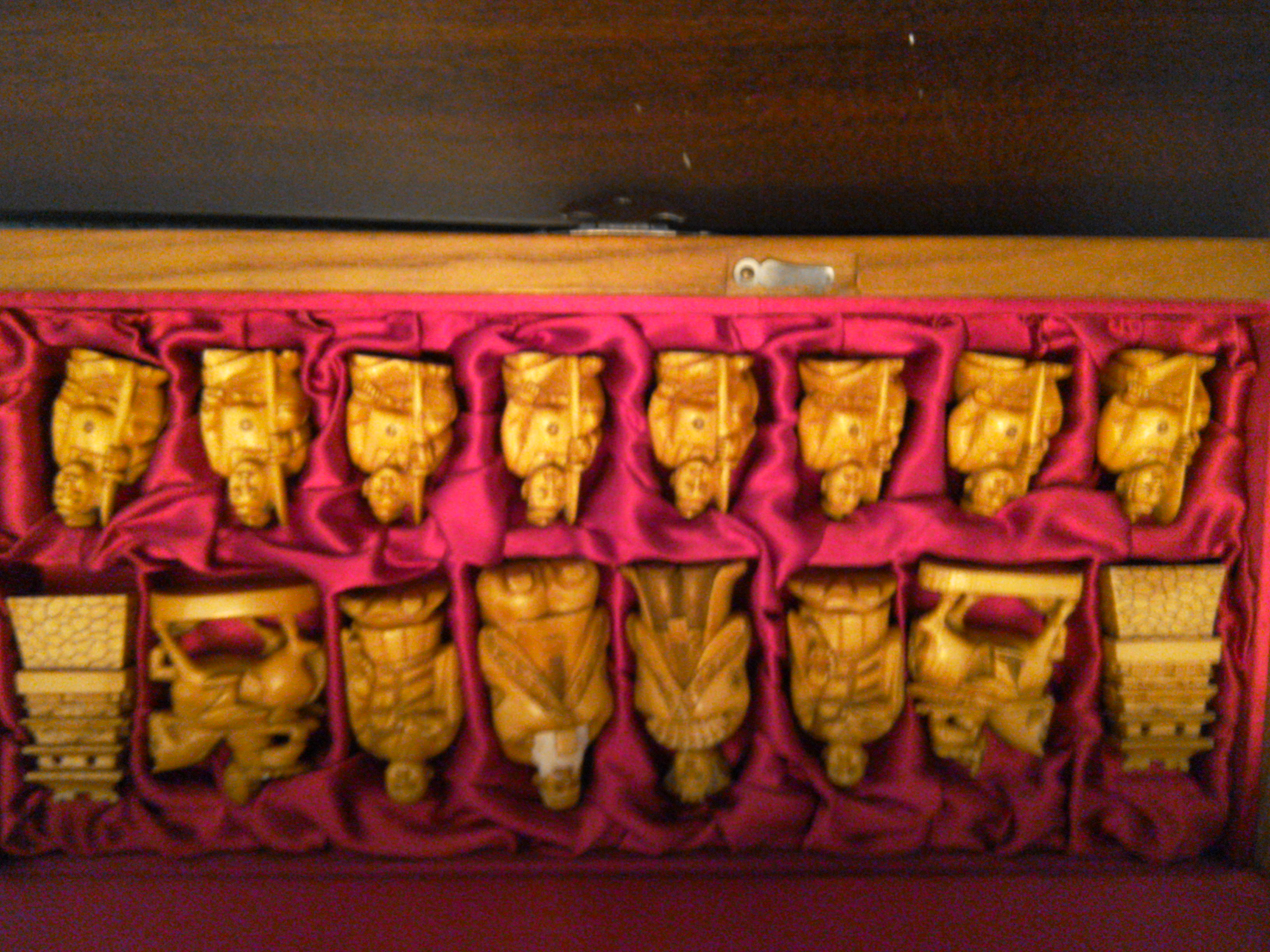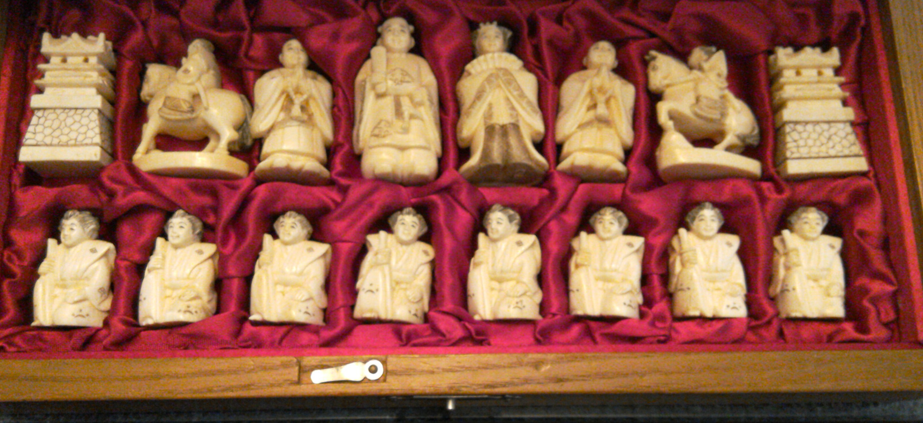 Early 20 century netsuke ivory chess set with feudal theme. Purchased in Chile around 1985-1990.