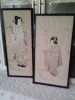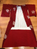(2) identical calf-length ivory silk kimonos with flowered embroidery