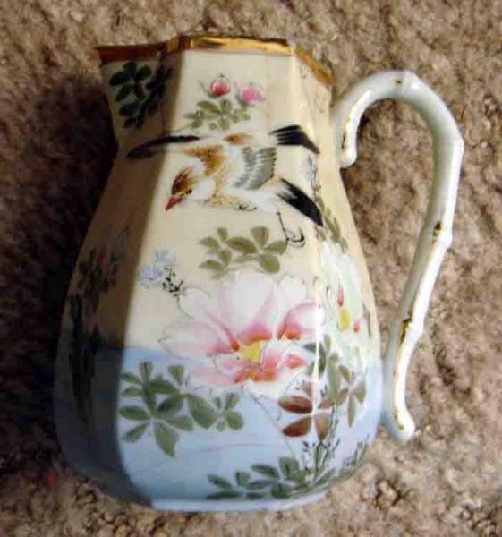 Light shines through the porcelain. It has a bamboo shaped handle that used to have gold overglaze. There is a lot of nice gold on rim.