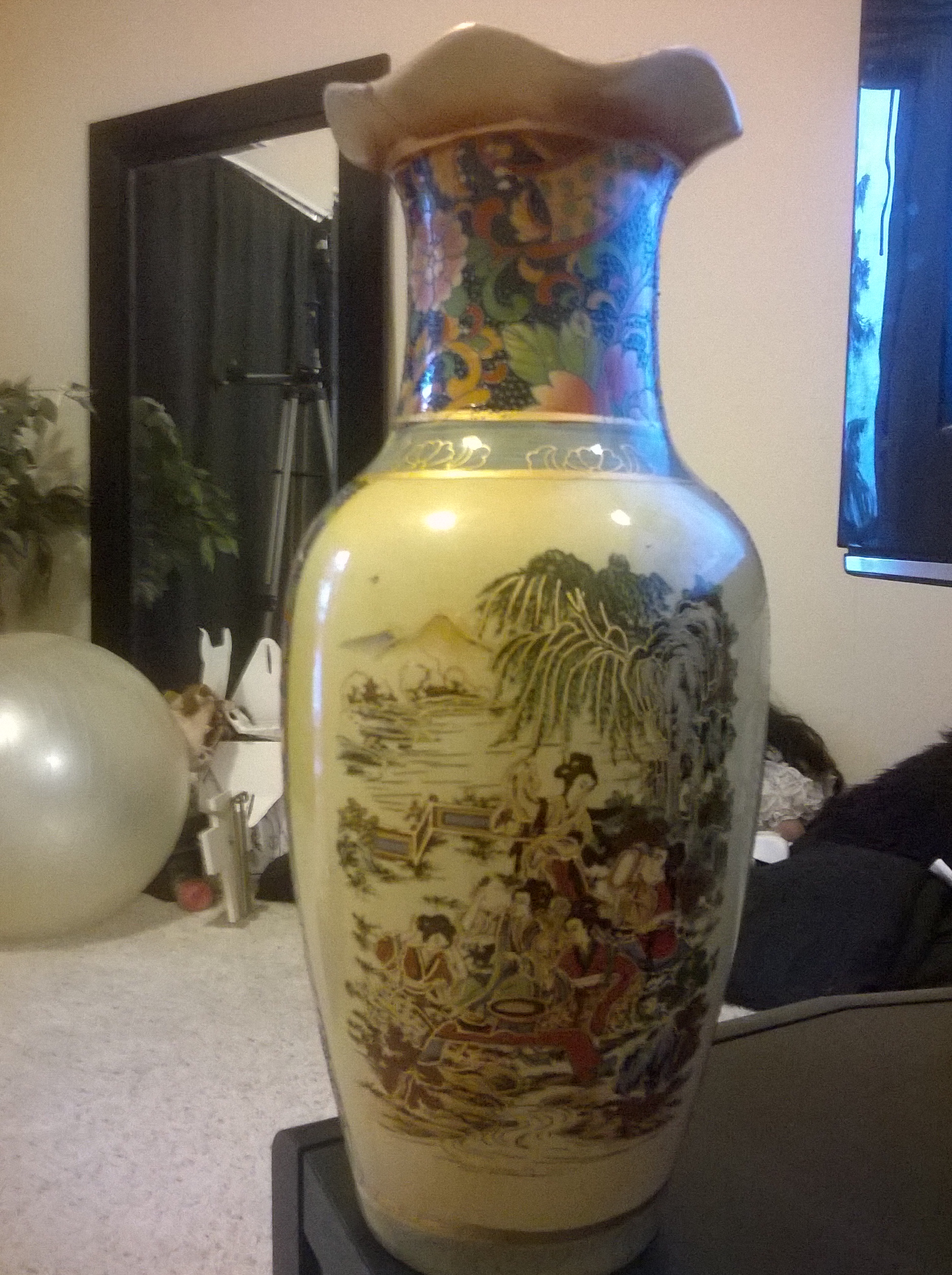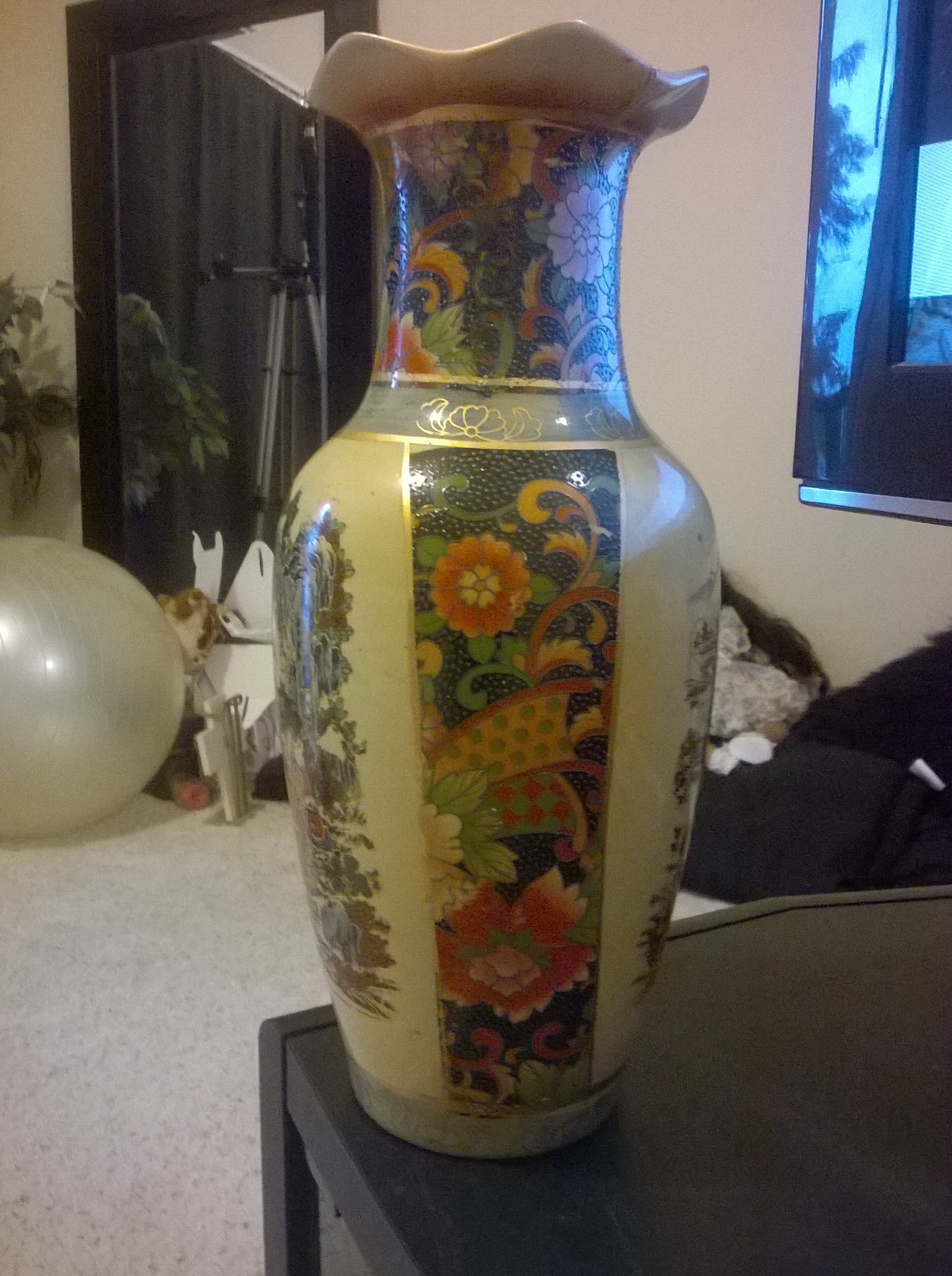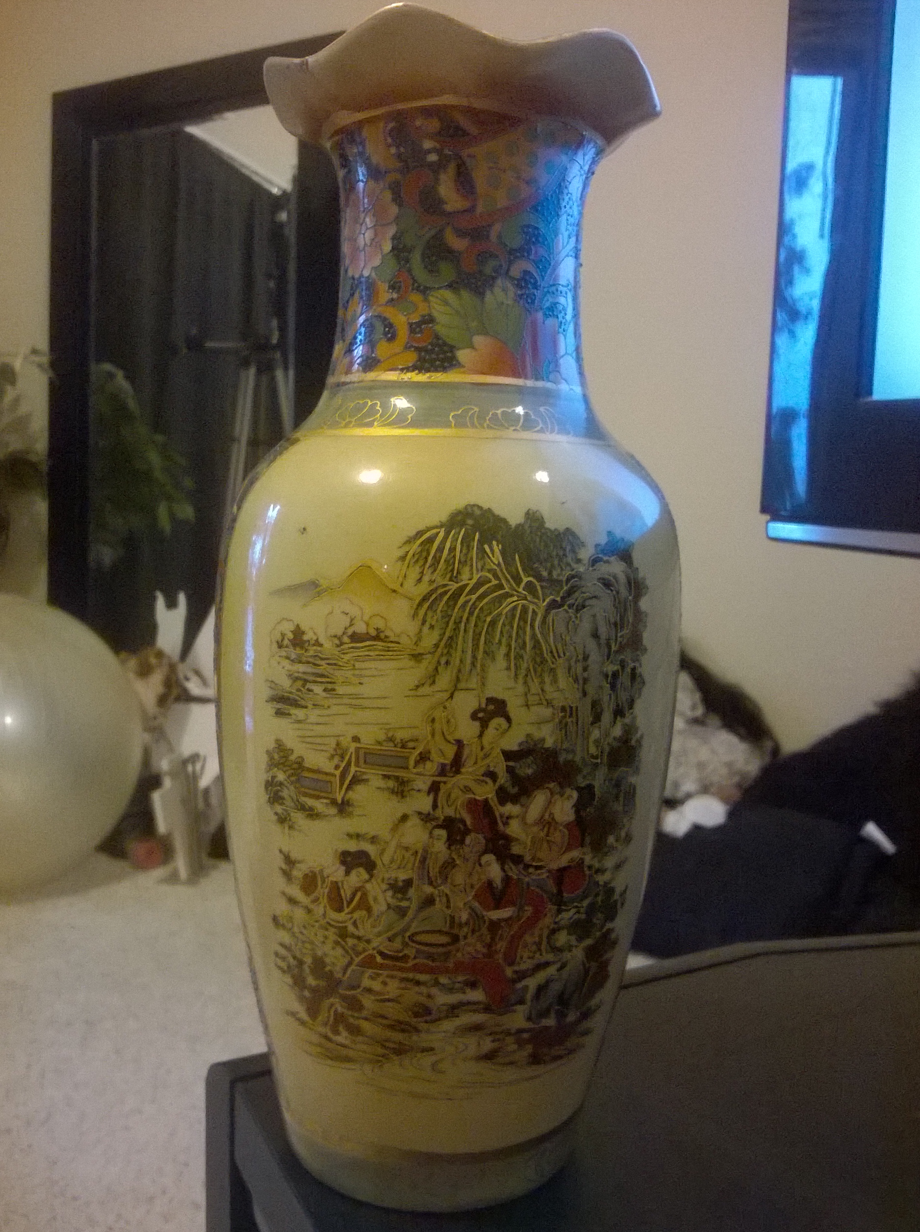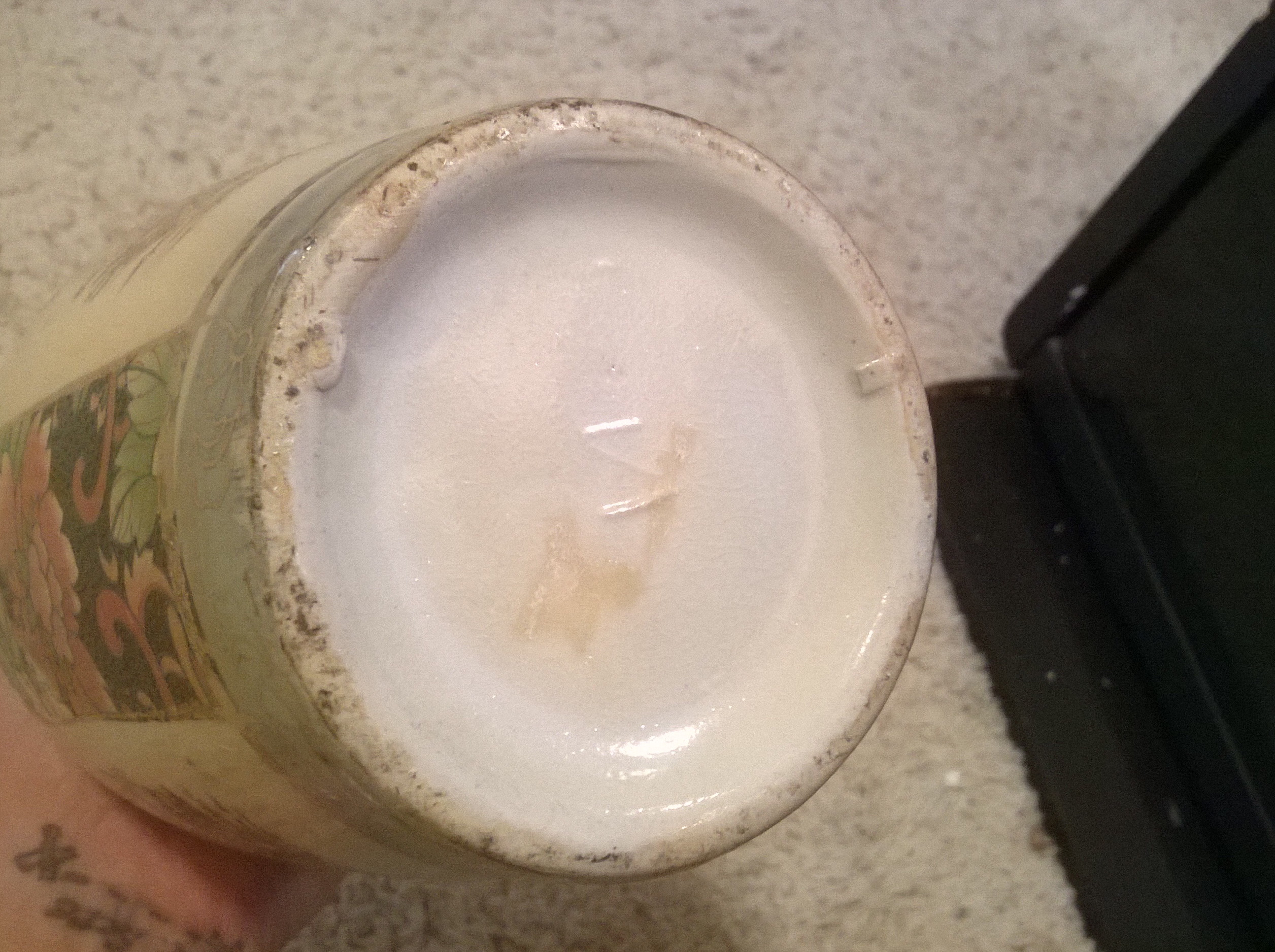 As far as I can find , this is a 11 3/4" Japanese Satsuma Fluted Vase . It has a S with jagged edges with a dot under it on the bottom of the vase (like a backwards Z). What i have come to find out is that Between the late 1800's & 1920 they use to paint a symbol in red of a circle & cross & the artists tag. & that vases after this time that were replicated has (in english writing) Royal Satsuma or made in China . I also seen a couple of articles stating that vases from an earlier period had no markings.