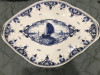 It is a very heavy plate and is 14 1/2 " in diameter. It has blue etching around the rim, and a flower patch medallion inset in the middle which looks to be ceramic. The rest of the platter feels like Bone China with a cross hair pattern that gives the platter a sort of bamboo style look. I have not been unable to identify the signature.