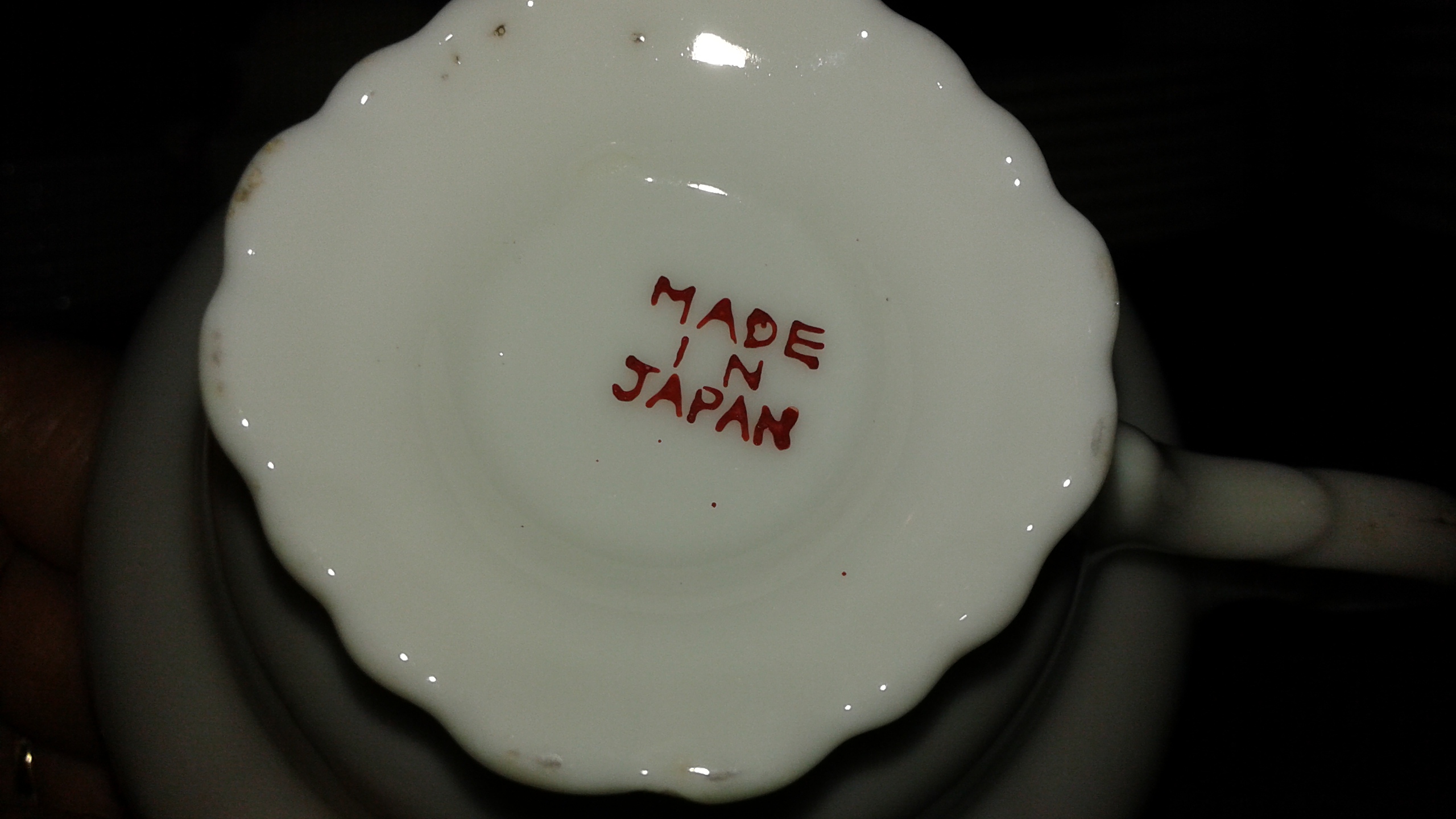 I have japanese tea cups and saucers trimmed in gold with made in japan painted on back there is no other marking or signiture on them other than made in japan.