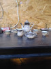 This is a lovely set of Japanese Satsuma ware, The marking I have no listing for, but it's likely a Taisho period (1912-1926) set. Sets like this were made in large numbers, so values for are quite more modest than one would think. Comparable sets often sell at auction for about $150.00- $300.00.