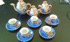The set includes 6 cups and saussers, pot, creamer and sugar dish.