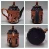 !st teapot 8 inches high - 2nd 5 inches high ... both 5 inches wide at largest part/wood handles