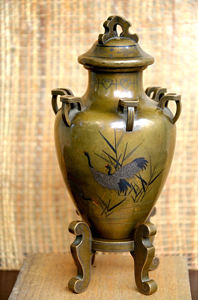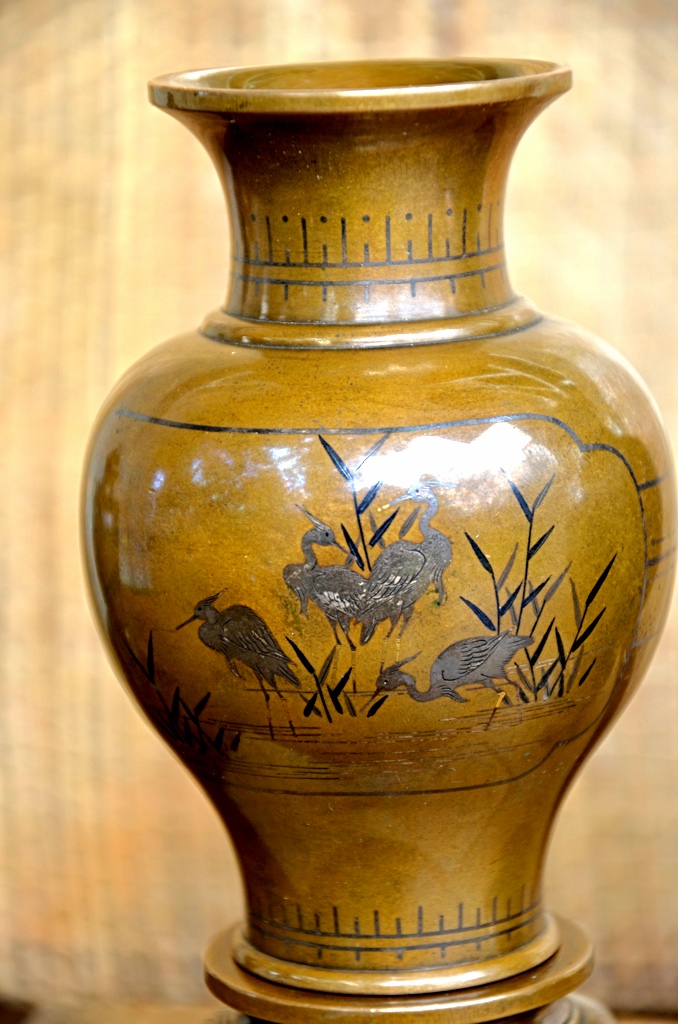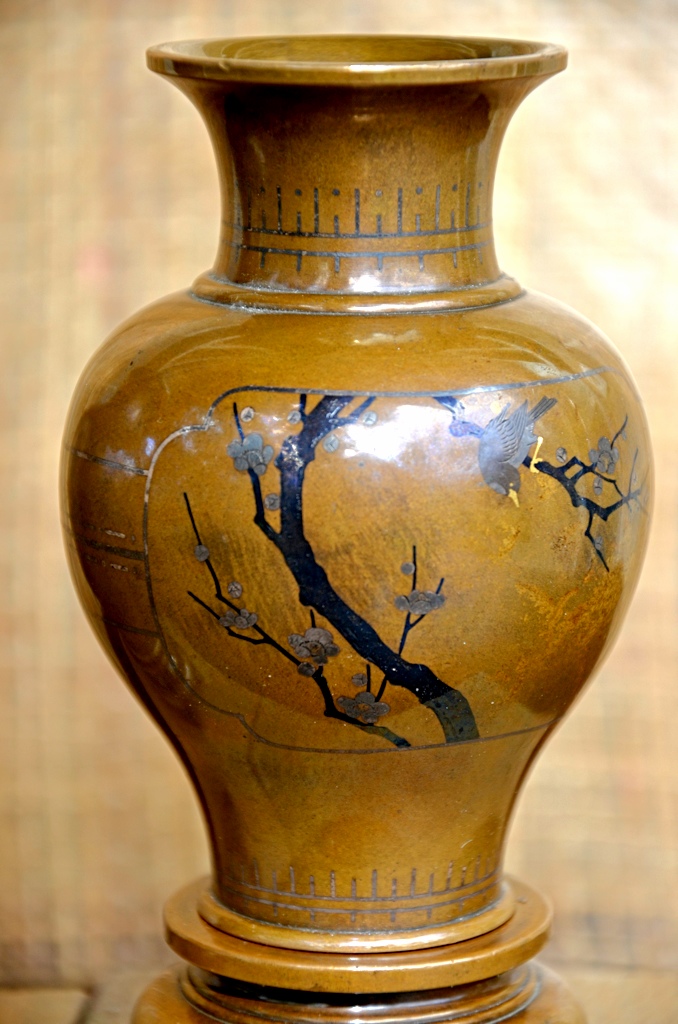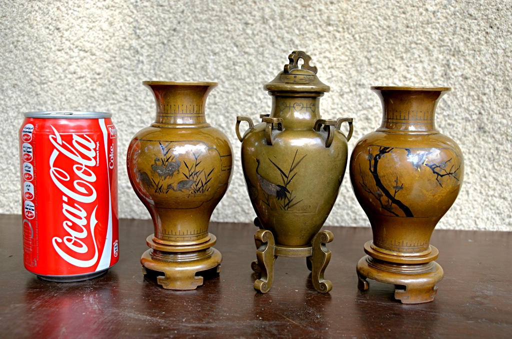 A set of 3 bronze vases made by Kyoto Kuroda-zukuri.