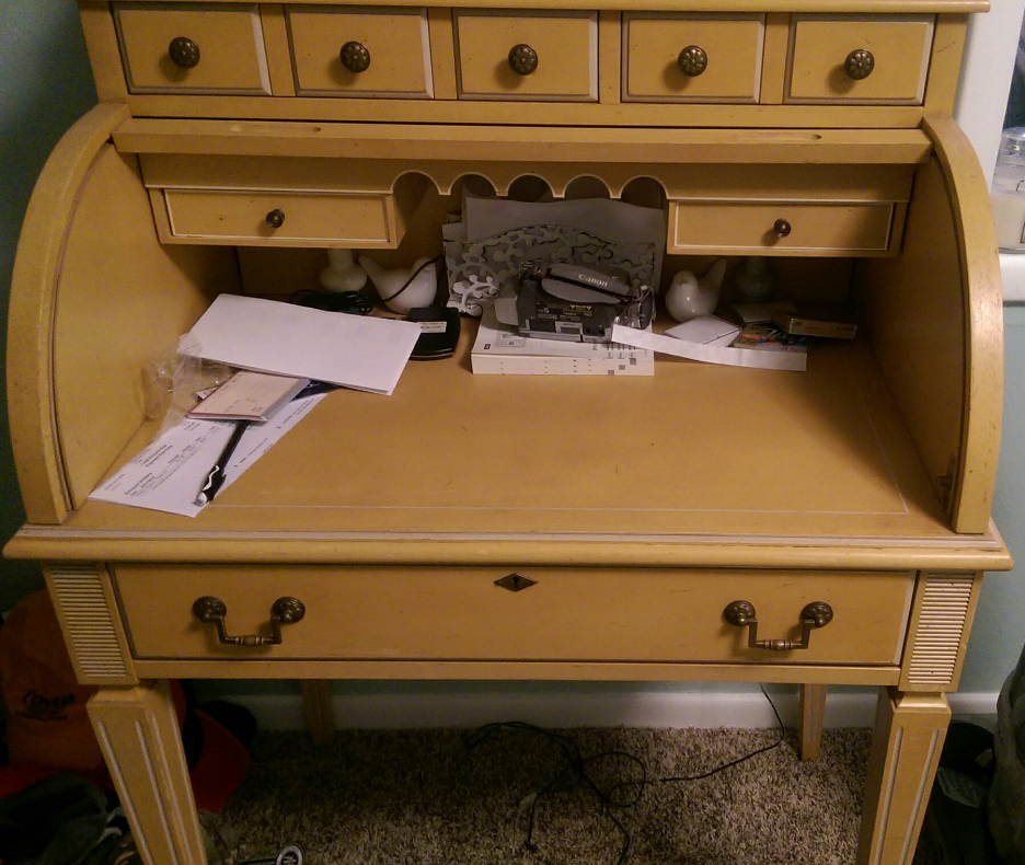 I bought this desk at a flea market and am interested in how old it is and what it might be worth. It had the shield logo in the drawer but I don't see any serial numbers. Any information on it would be appreciated.