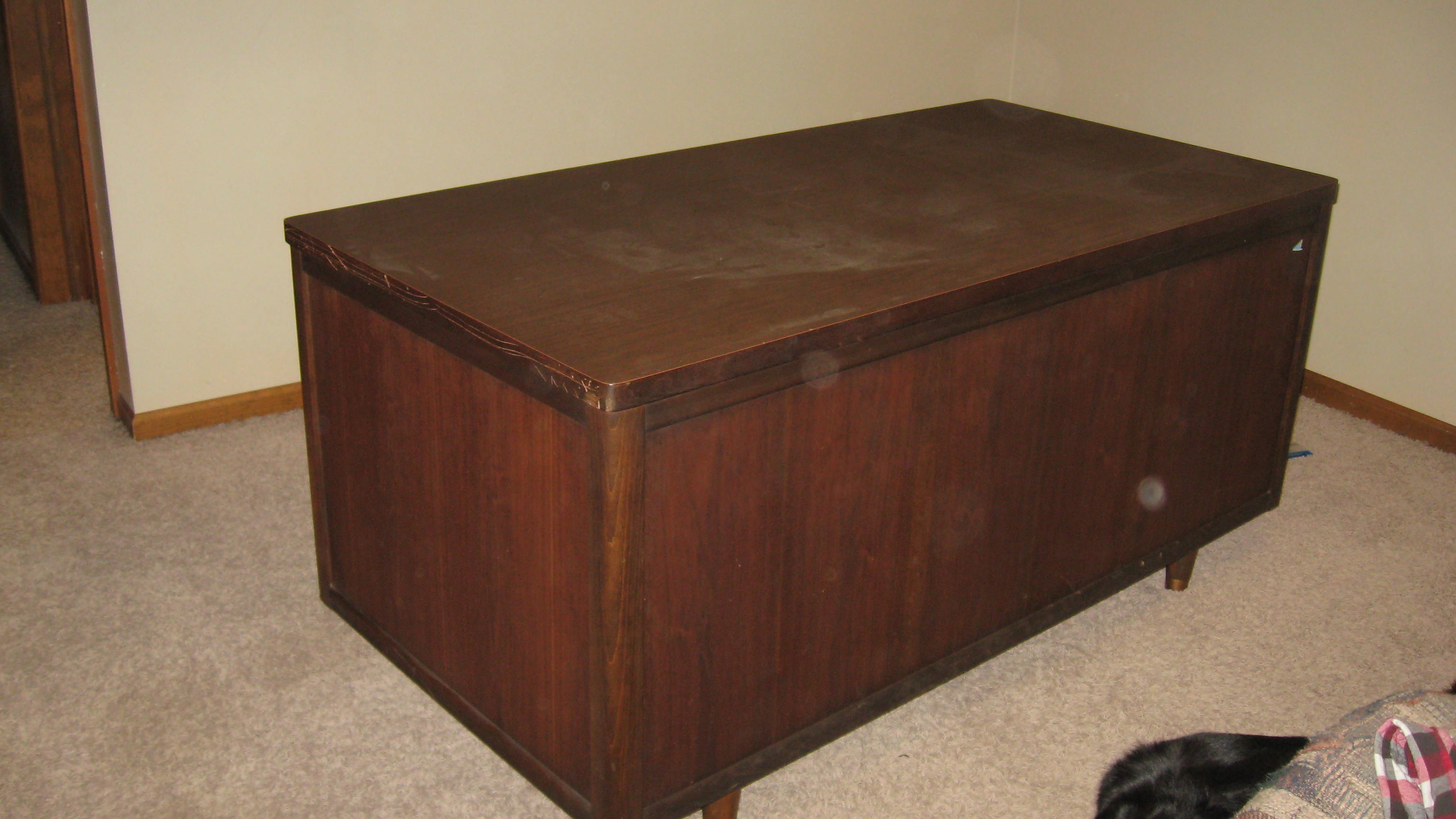 It is really nice desk very heavy, well made it, I dont know alot of what this furniture is worth, I know it is in really good shape, solid wood. The company is Jasper furniture company. That is just dust on the top there are hardly any scratches.