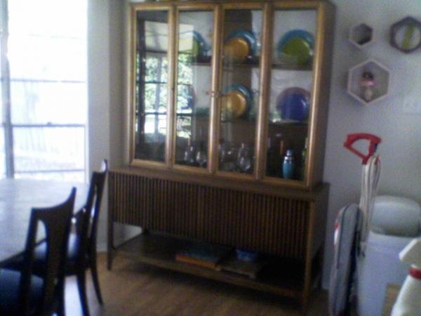 The china cabinet is pretty good condition, but one of the glass panels has a crack in it.