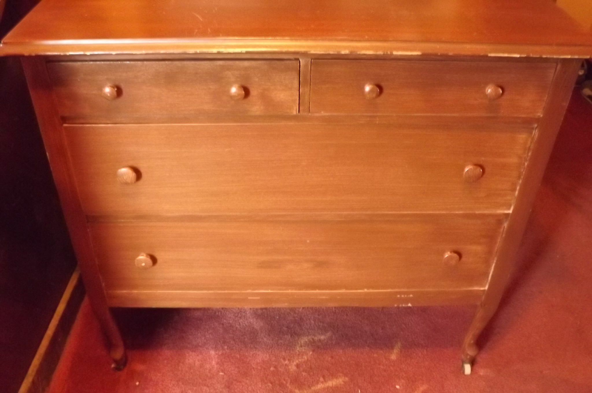 I recieved this dresser thru the family. I know its a JB Van Sciver dresser cause It is stamped in the drawer.  It has wheels on the bottom of the legs. Its solid wood very well built and in good condition.