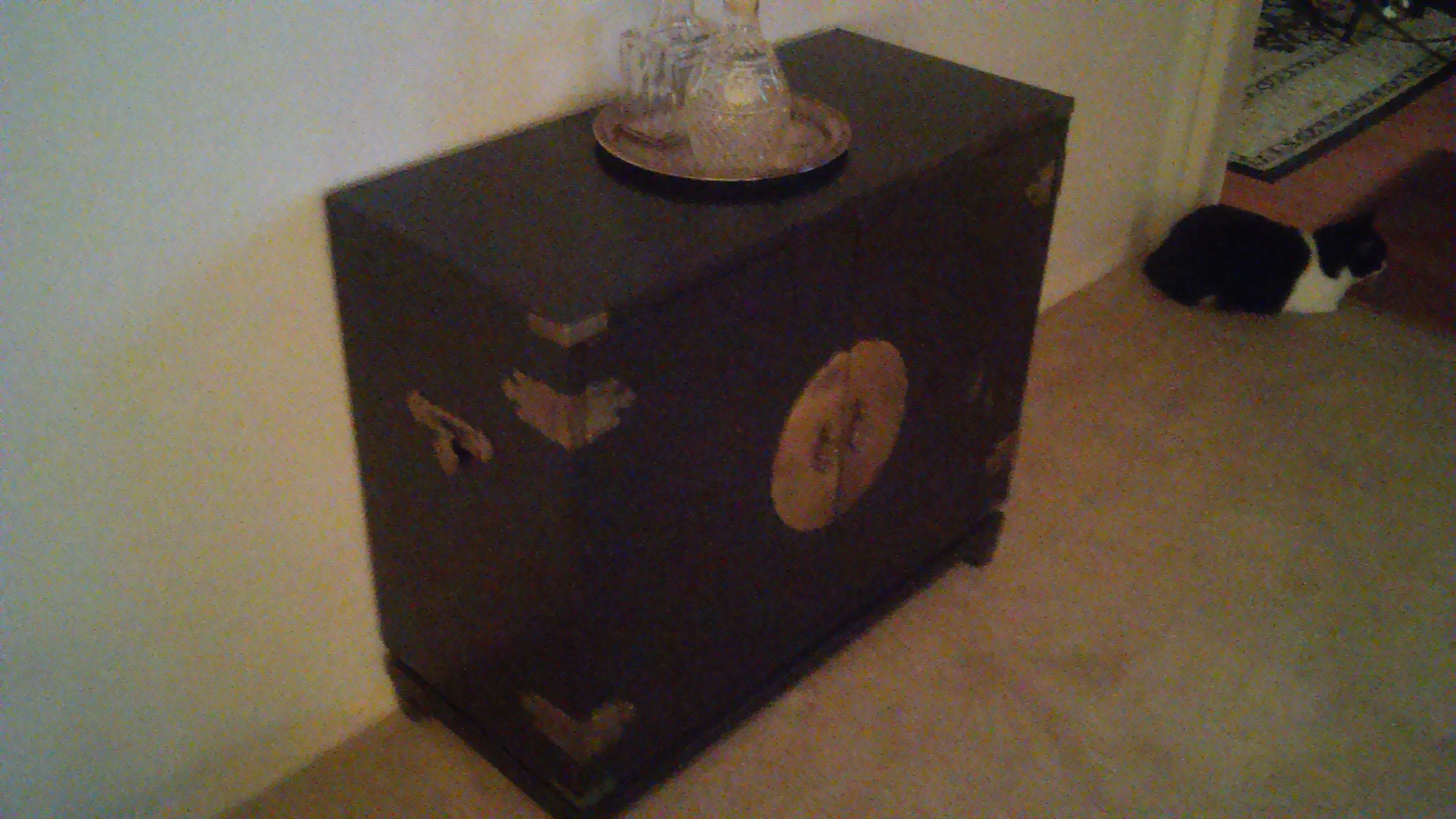 Wood, copper on black