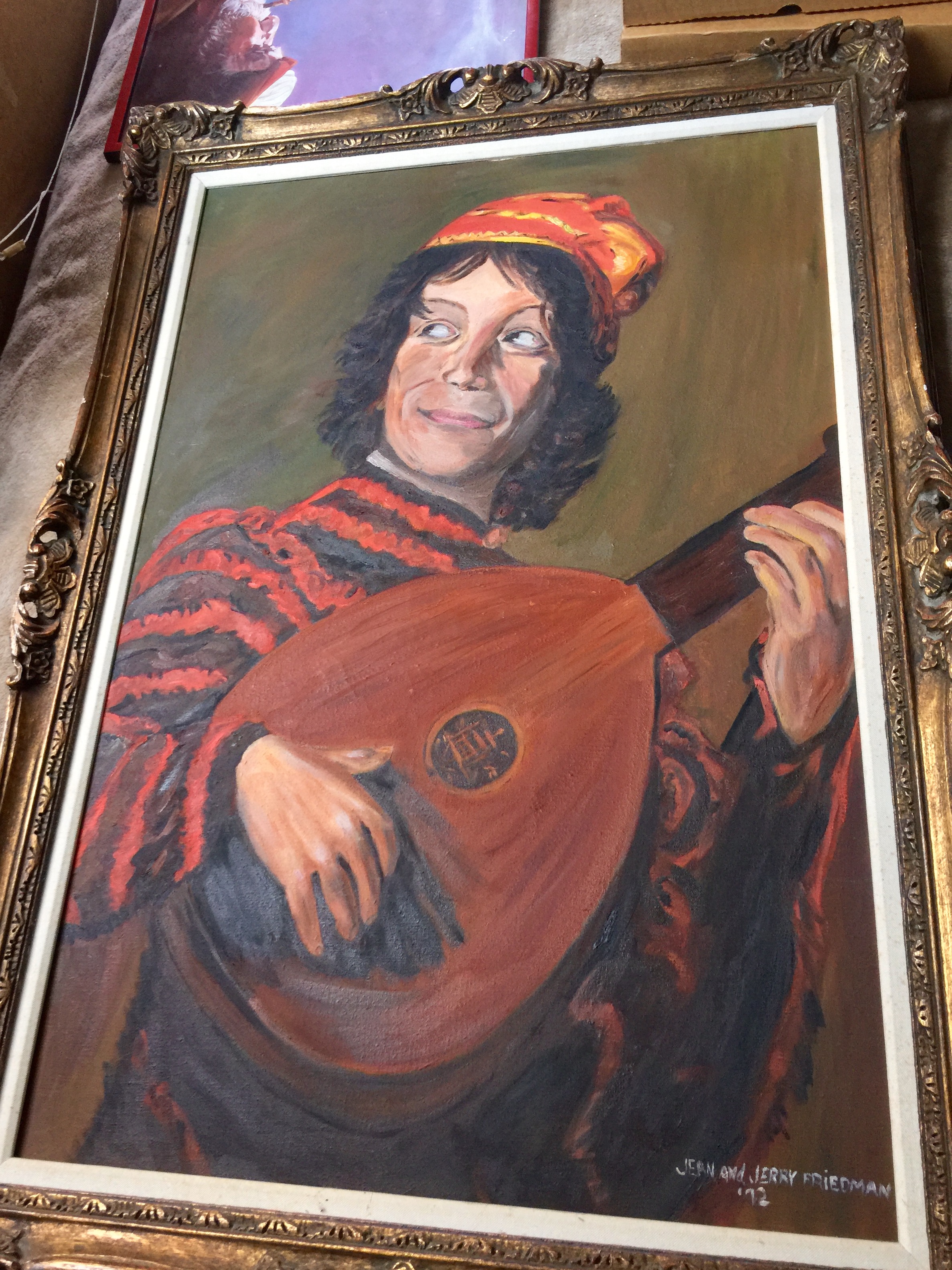 I have a very large canvas painting that is signed Jean and Jerry Friedman '72 it appears to be of a jester playing a mandolin. Very vibrant colors. Any info about artist, value or such would be greatly appreciated!