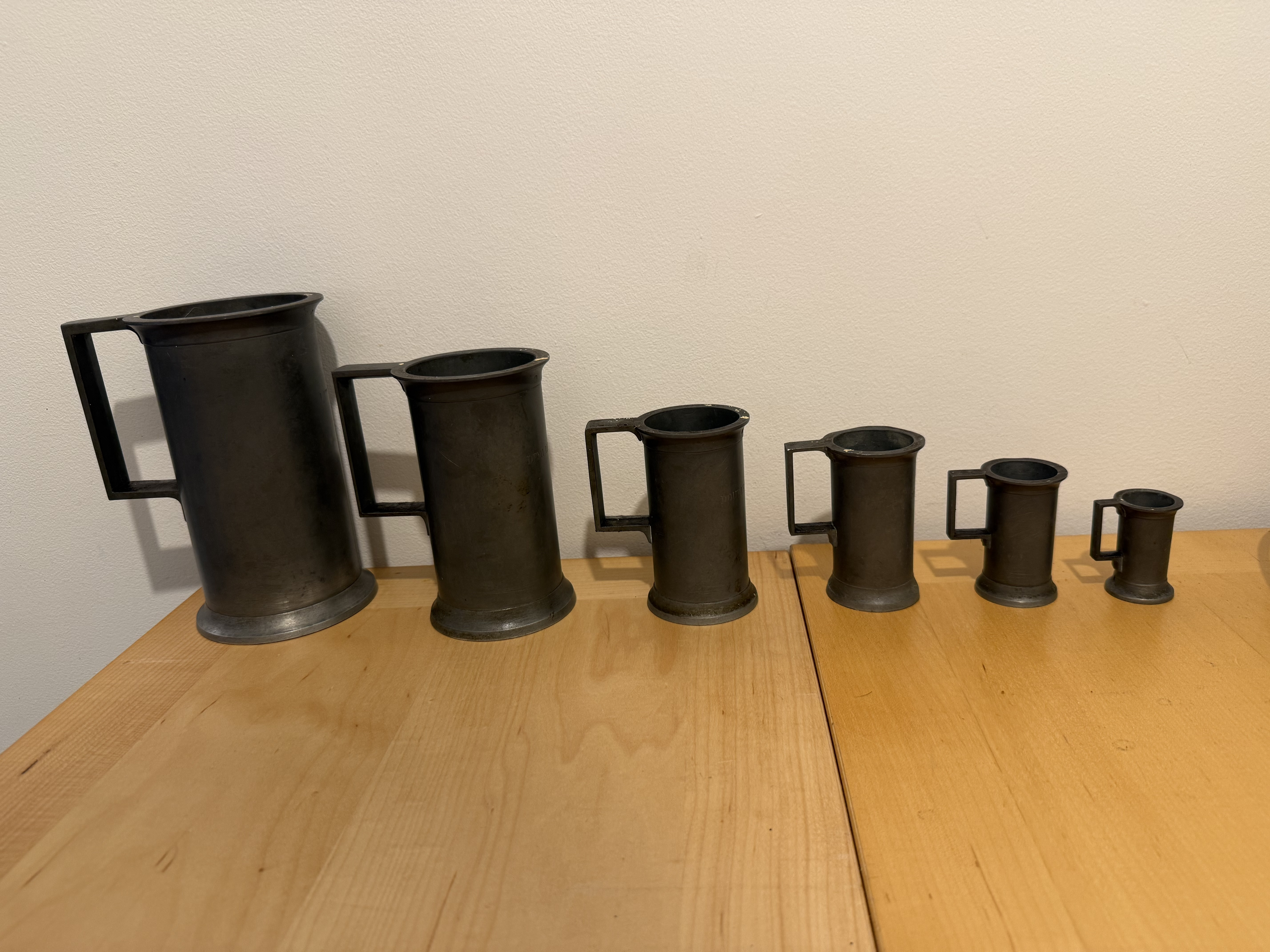 JR pewter measuring tankards - from a litre down