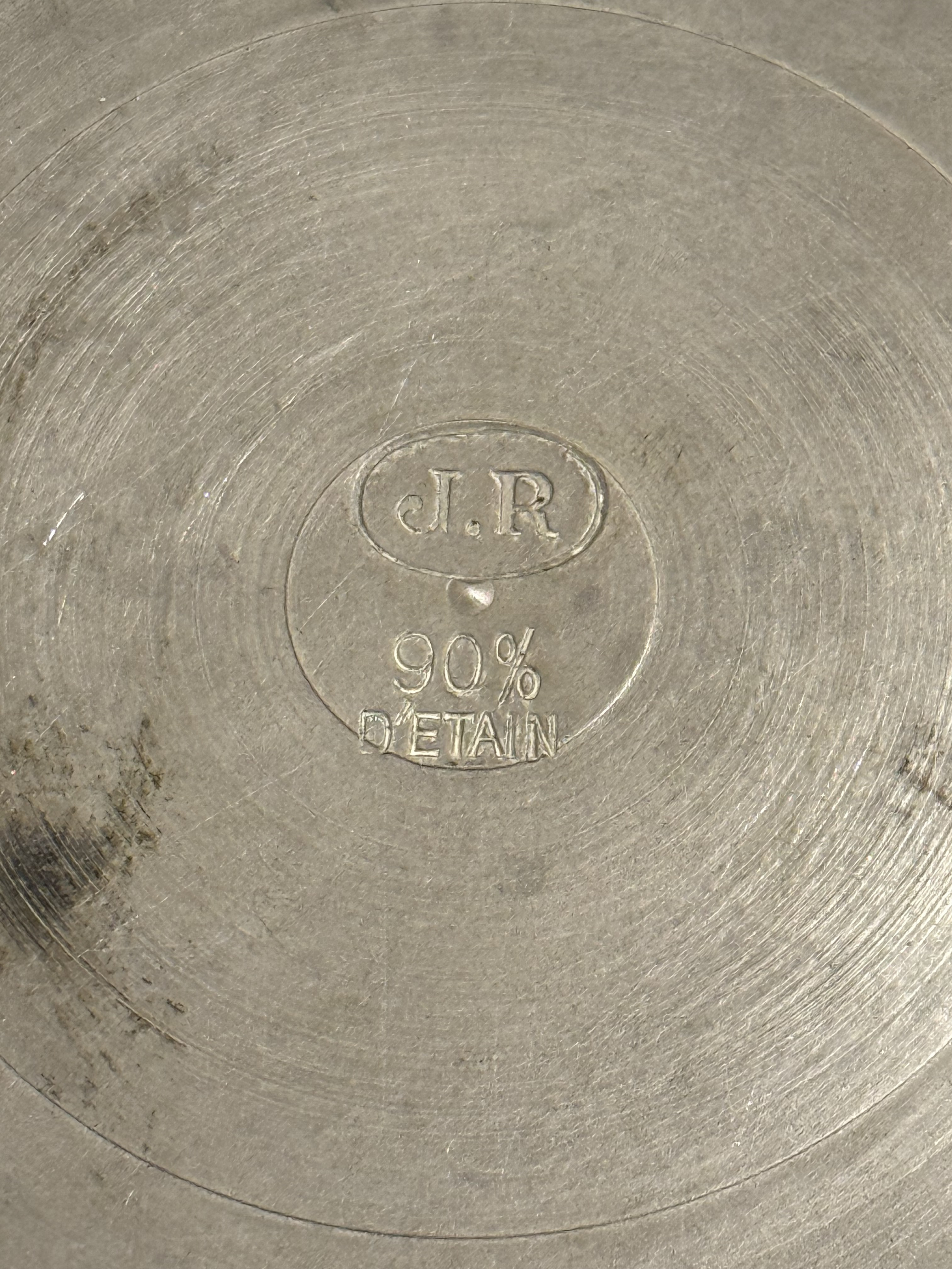 Jean Roussel (J.R.) is known for producing high-quality traditional French pewterware, often inspired by 18th–19th century European designs. Pewter measuring jugs or tankards like these were commonly used in bistros, apothecaries, and households to measure wine, spirits, or dry goods.