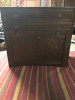 I have this extendable Jefferson Slide Table, from the Jefferson Woodworking Co. in Louisville. I don't know from which wood it is made (my online research indicates oak) nor do I know what year it was produced. However, it is very solid and with limited wear on its surface. The sliding mechanism is functional, but I'm missing the leaves to extend to its full 3m (10ft) length, from its contracted 1.5m (5ft) legnth.