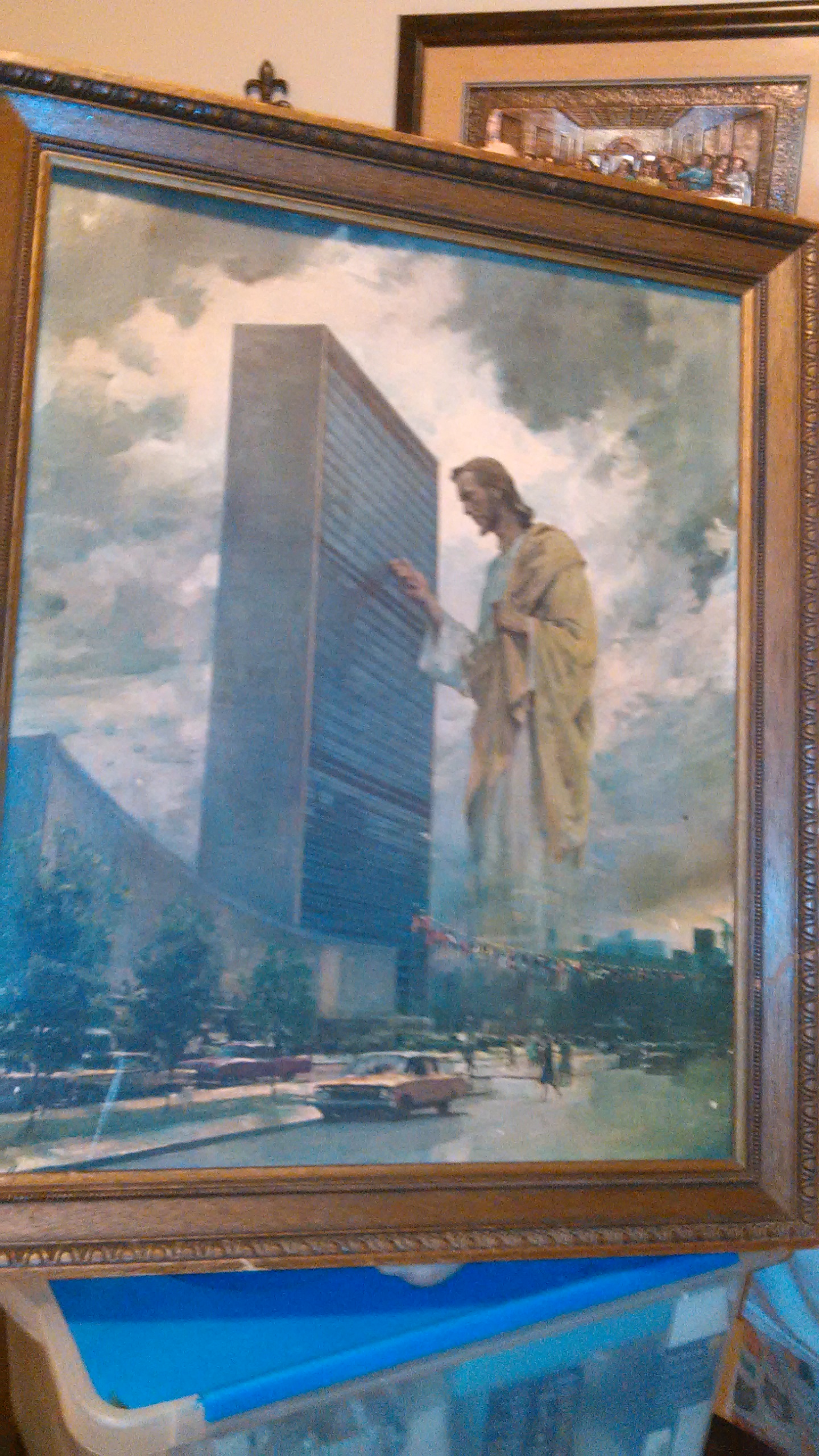 Jesus looking over United Nations building