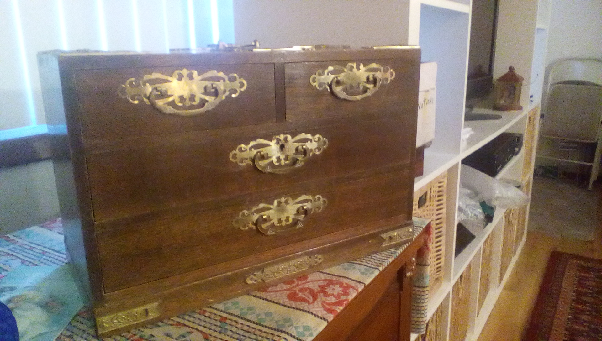 My mother has had this for a long time. Curious as to its current value. It is solid wood, with brass fixtures.