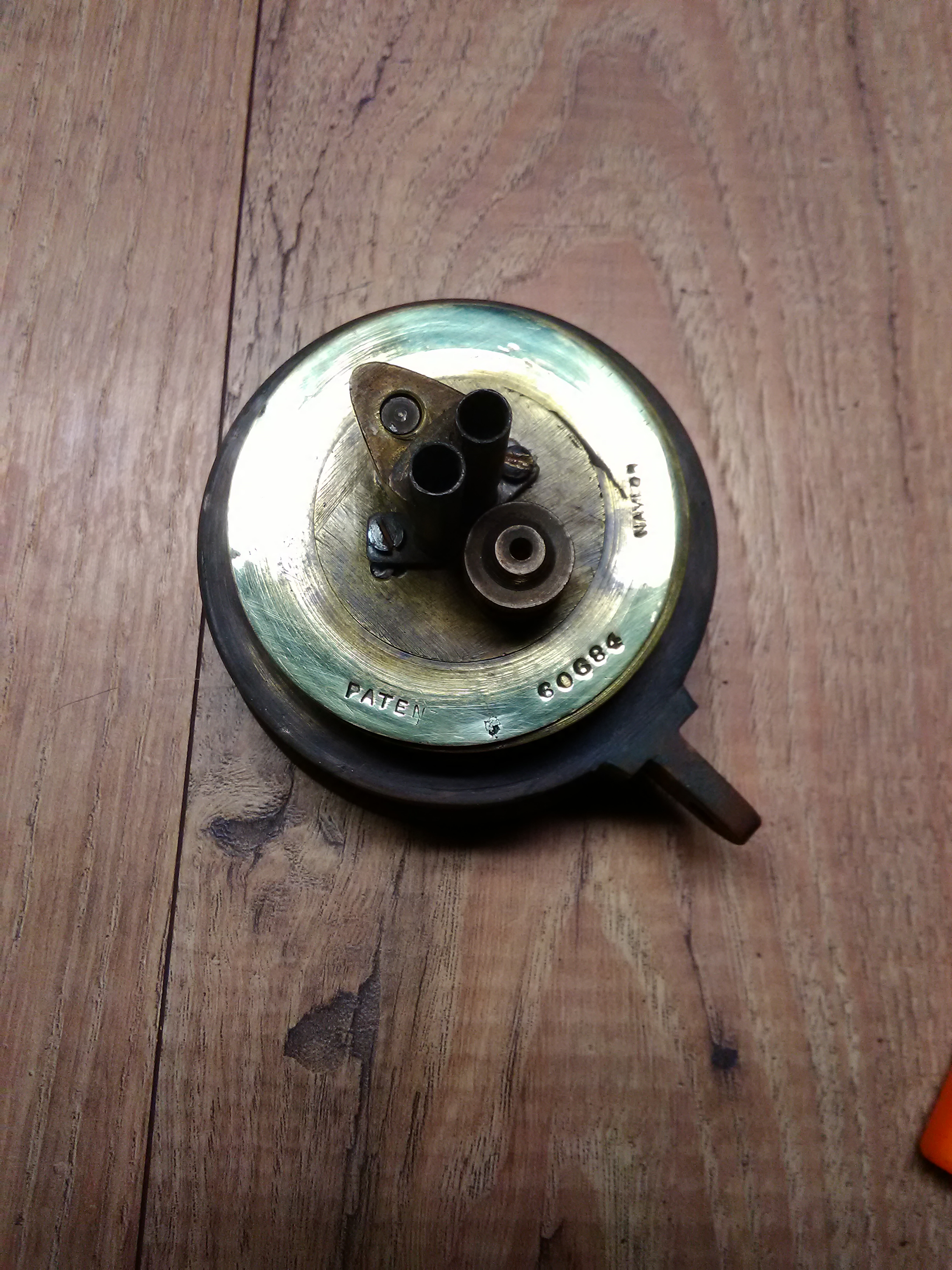 Has a blank small brass plate under large brass plate.