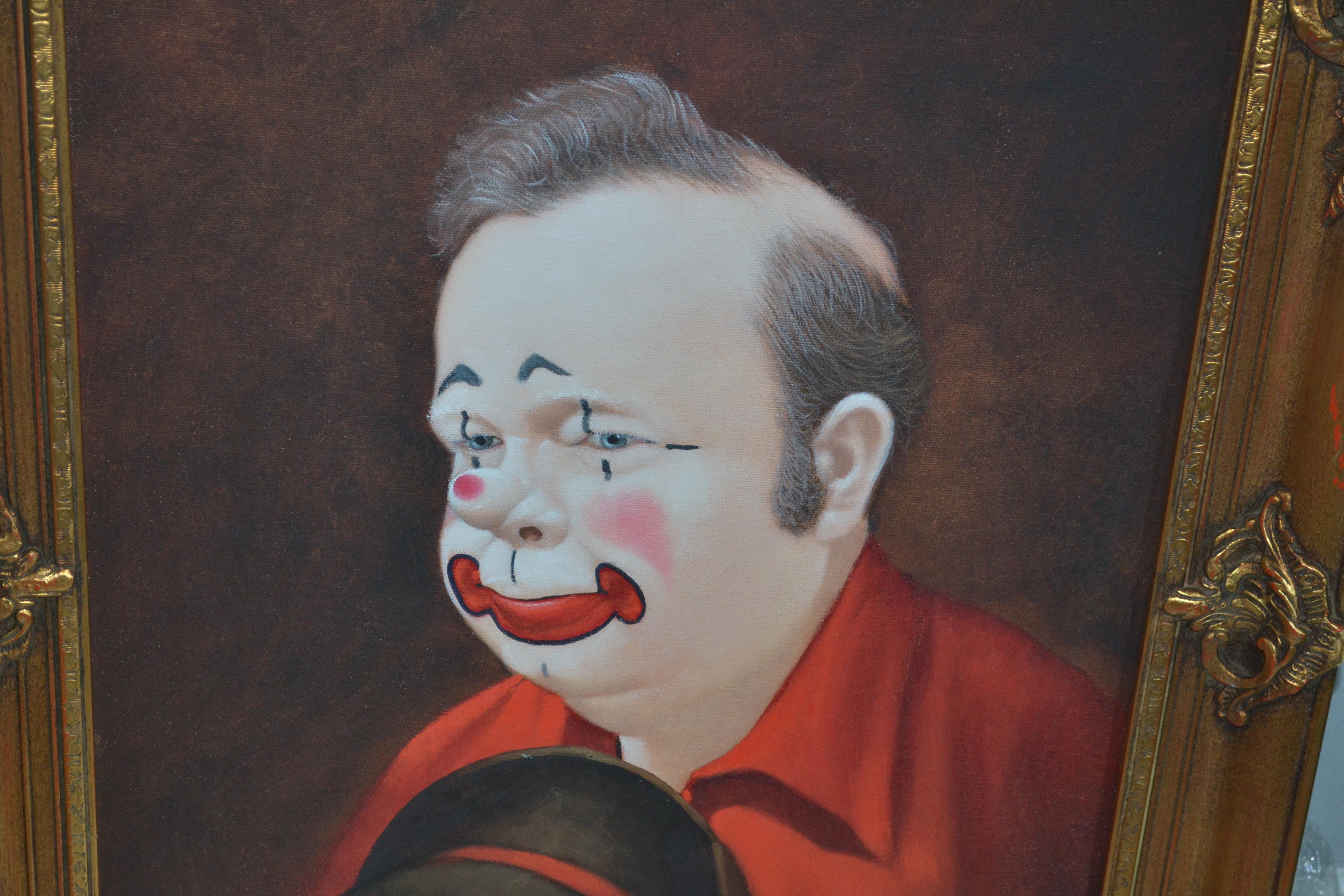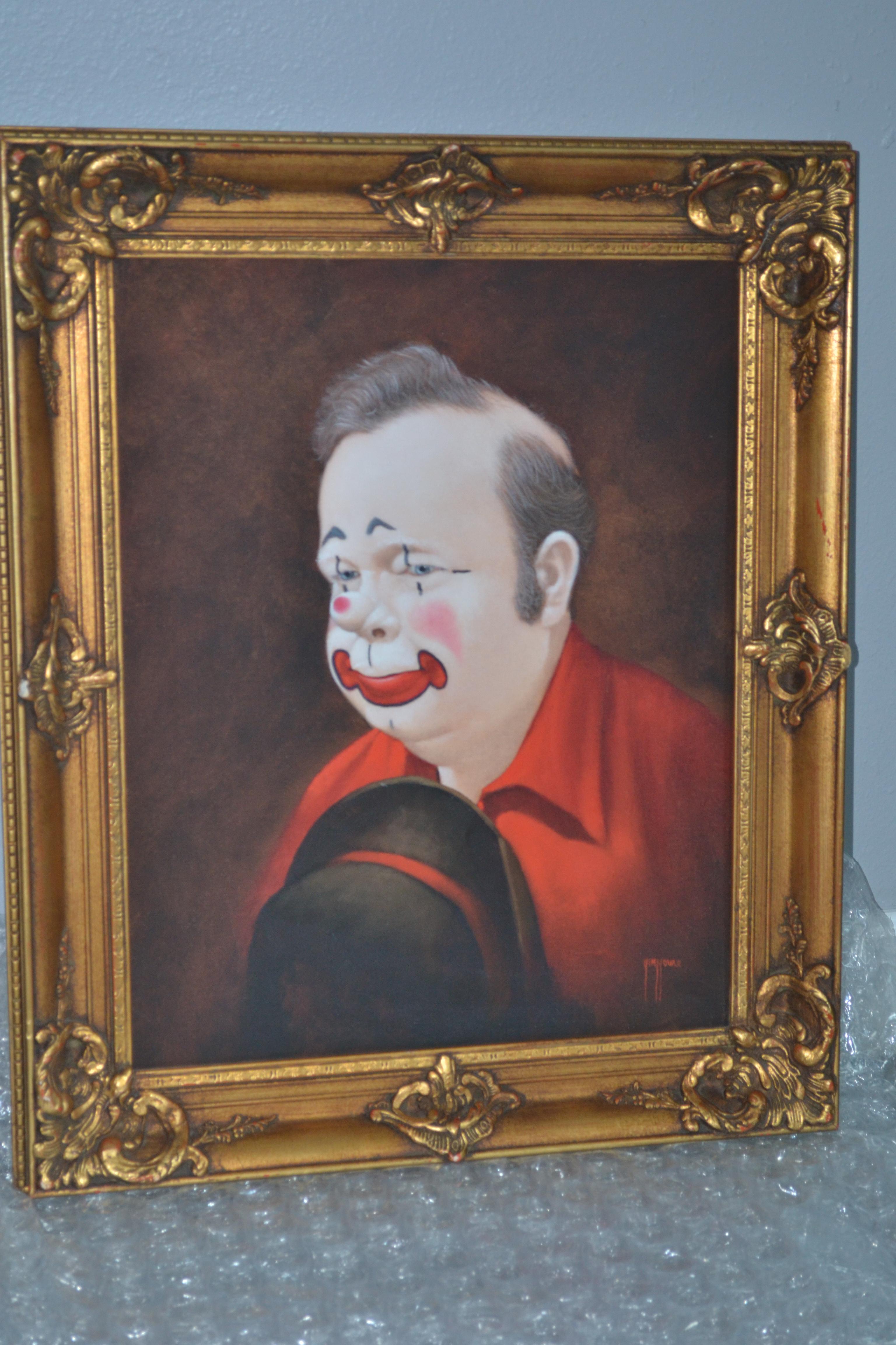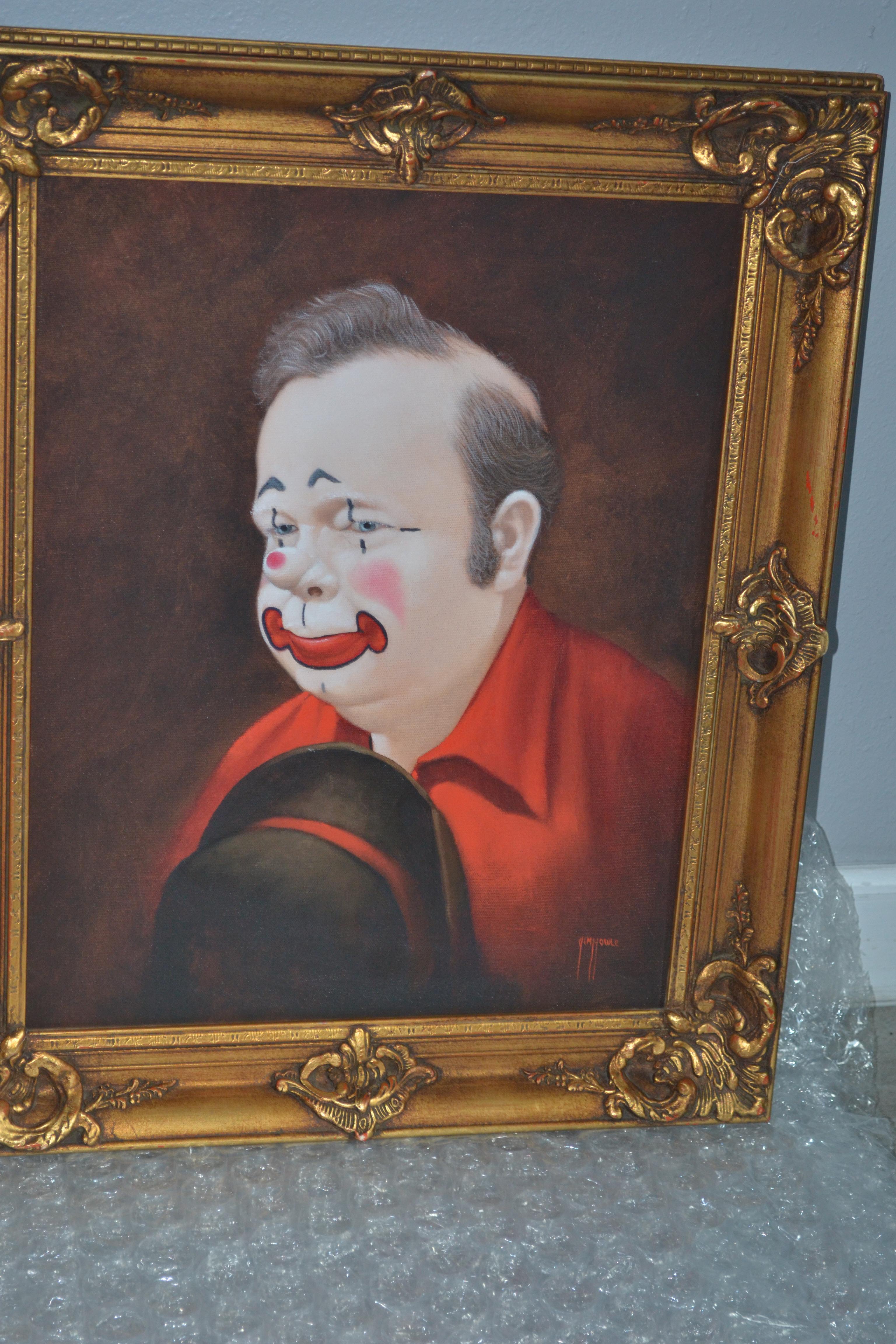 I have this beautiful signed canvas portrait of a clown signed by Jim Howle. Not sure if it's an oil painting...The frame is very beautiful and of excellent quality and these pics don't due justice. I believe the frame measures 24x24