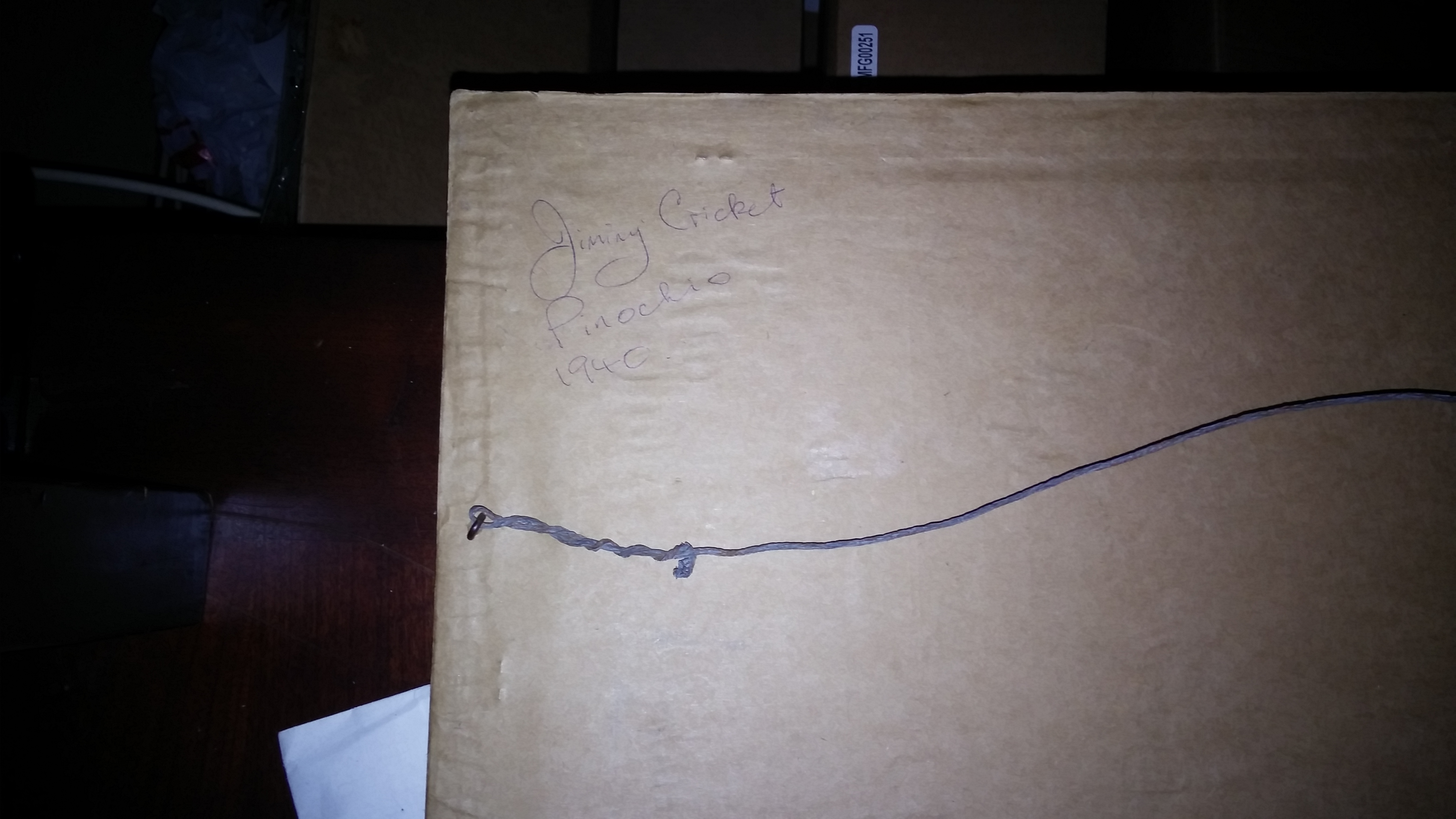 On the back it says - Jiminy Cricket Pinochio 1940 - as you can see from the picture.