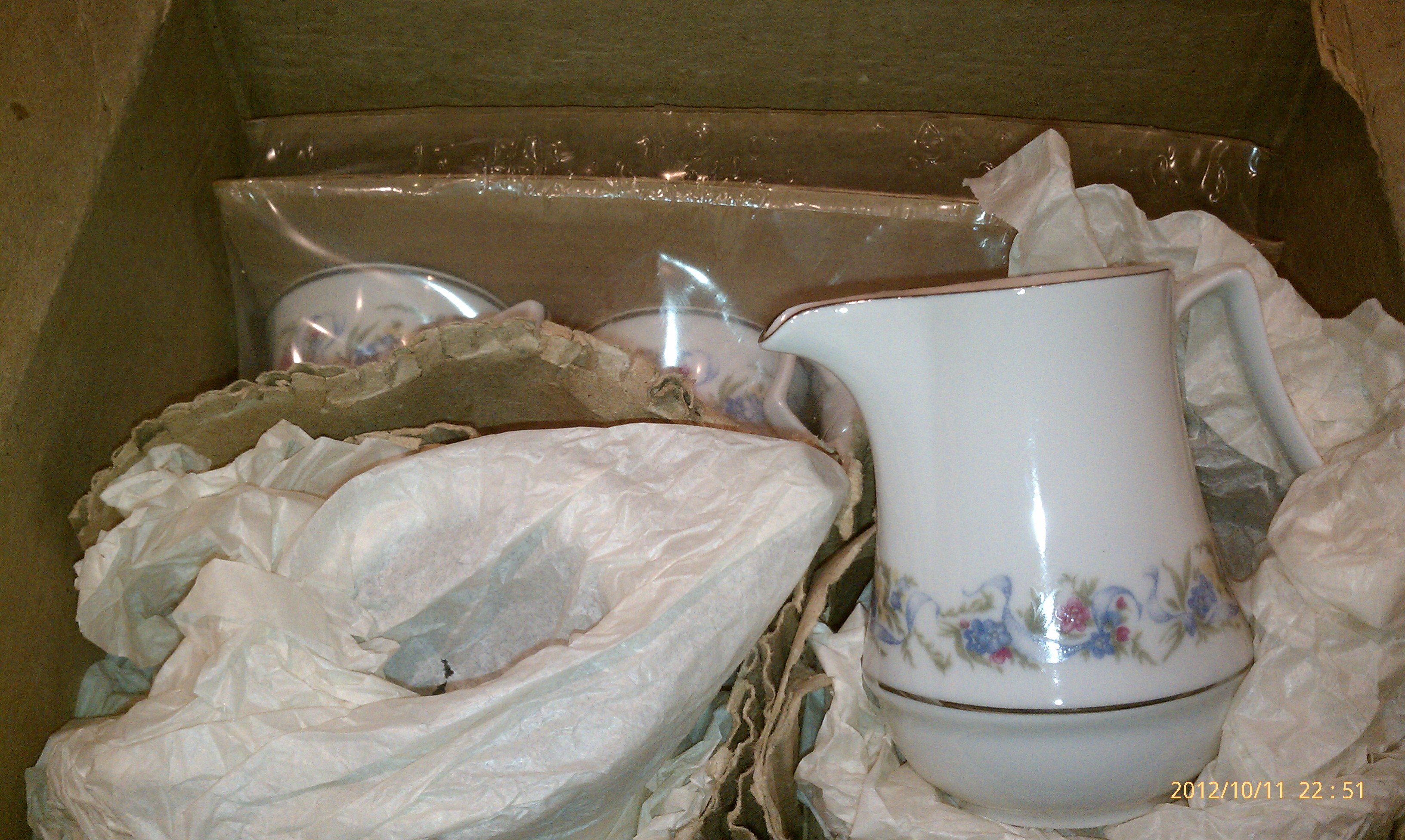 History Brand new still in box, never unpacked Porcelain demitasse coffee set with coffee pot / sugar and milk /